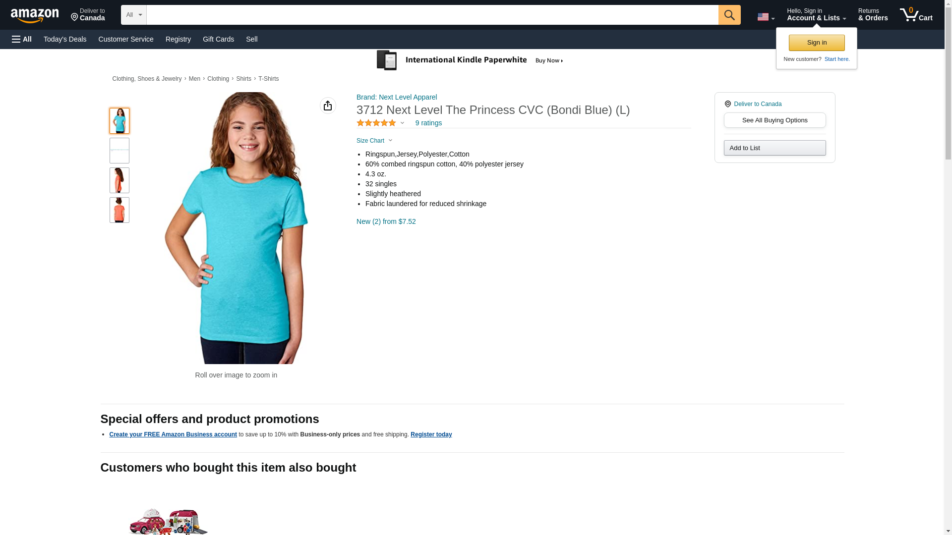Next Level Youth Princess CVC T-Shirt - Ice Blue - XL - (Style # 3712 - Original Label)