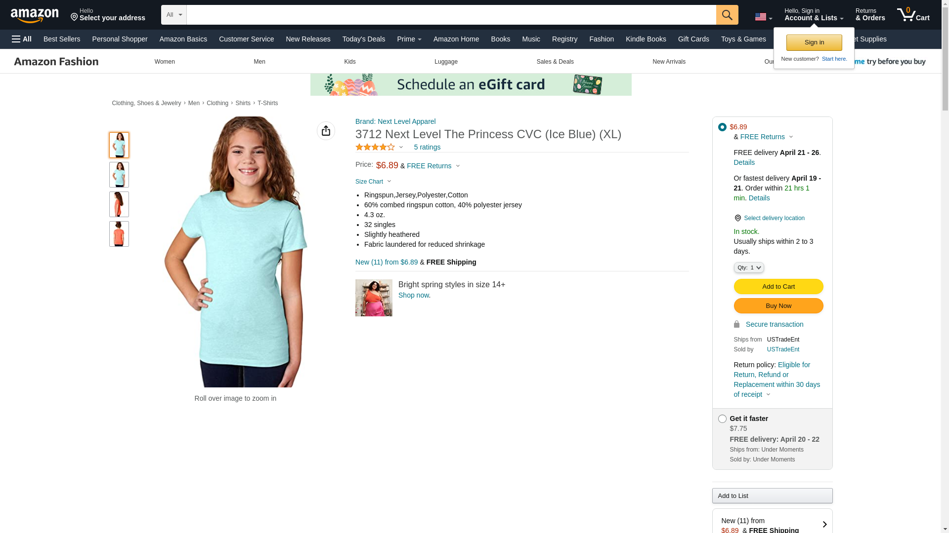 Next Level Youth Princess CVC T-Shirt - Ice Blue - XS - (Style # 3712 - Original Label)