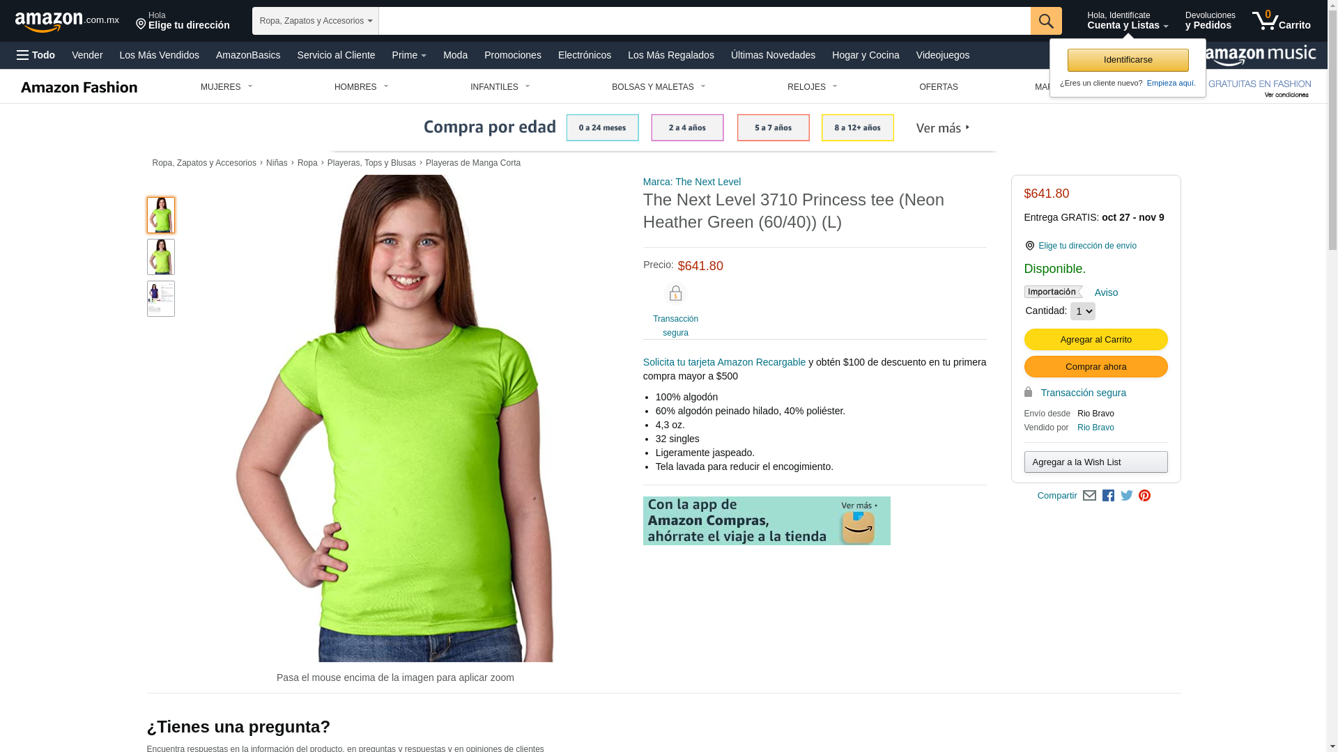 Next Level Apparel Girls Youth Cotton Princess T-Shirt, Neon Green, Medium