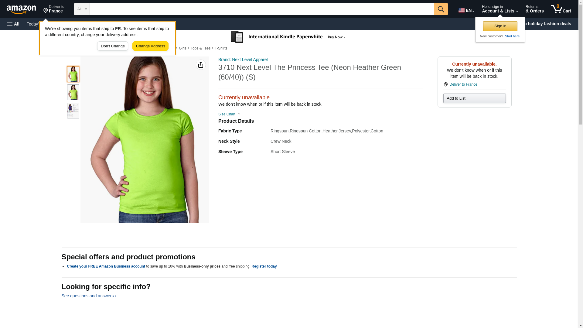 Next Level Apparel Girls Youth Cotton Princess T-Shirt, Neon Green, X-Small