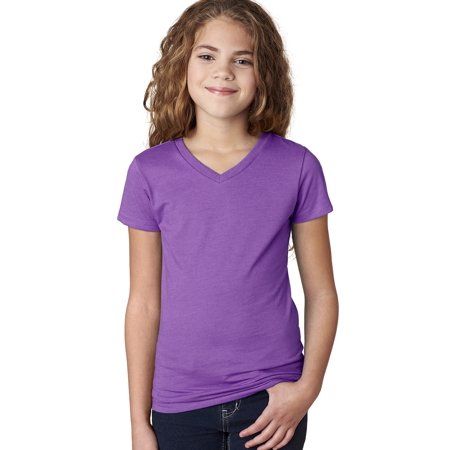 Next Level Big Girls The Adorable Jersey CVC V-Neck T-Shirt, LILAC, X-Small