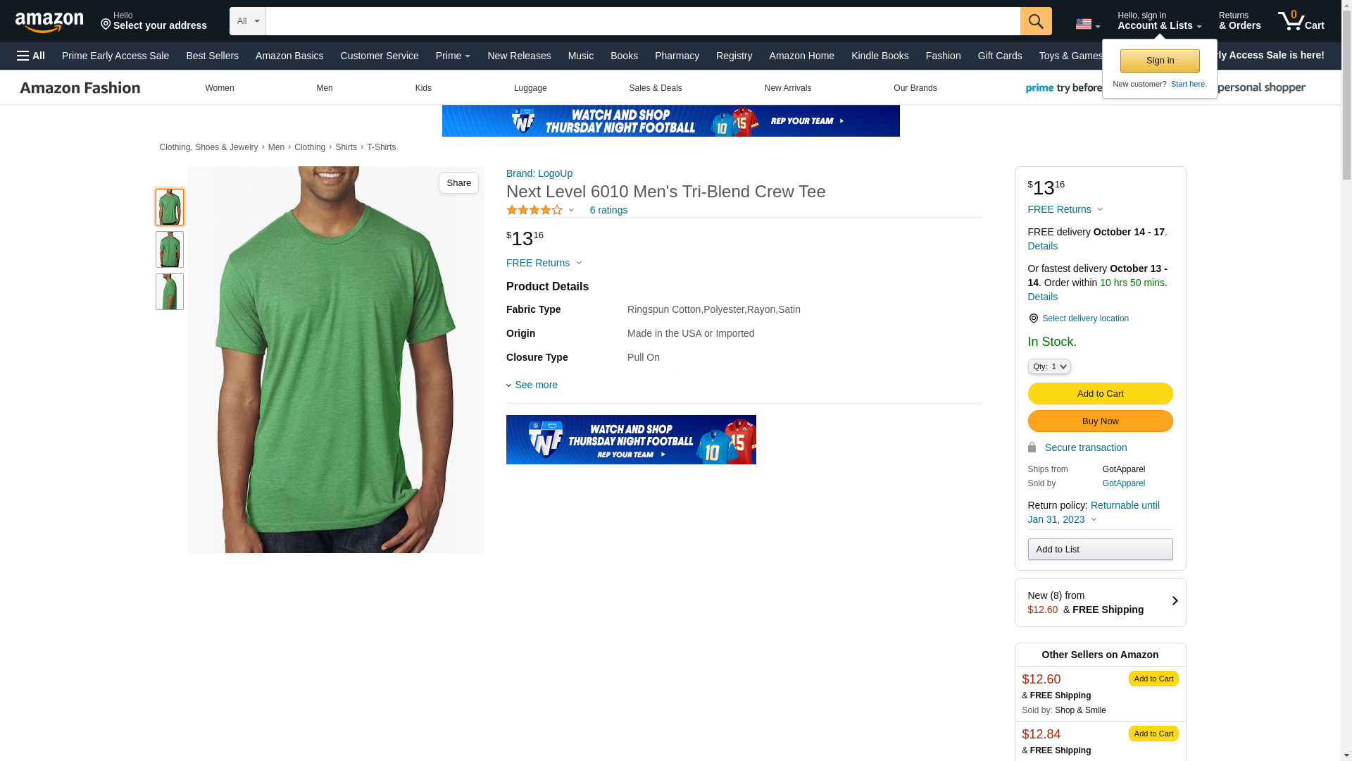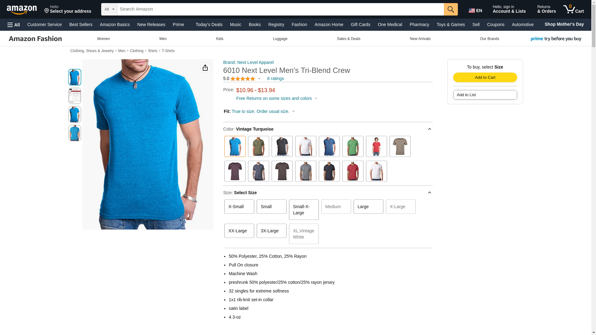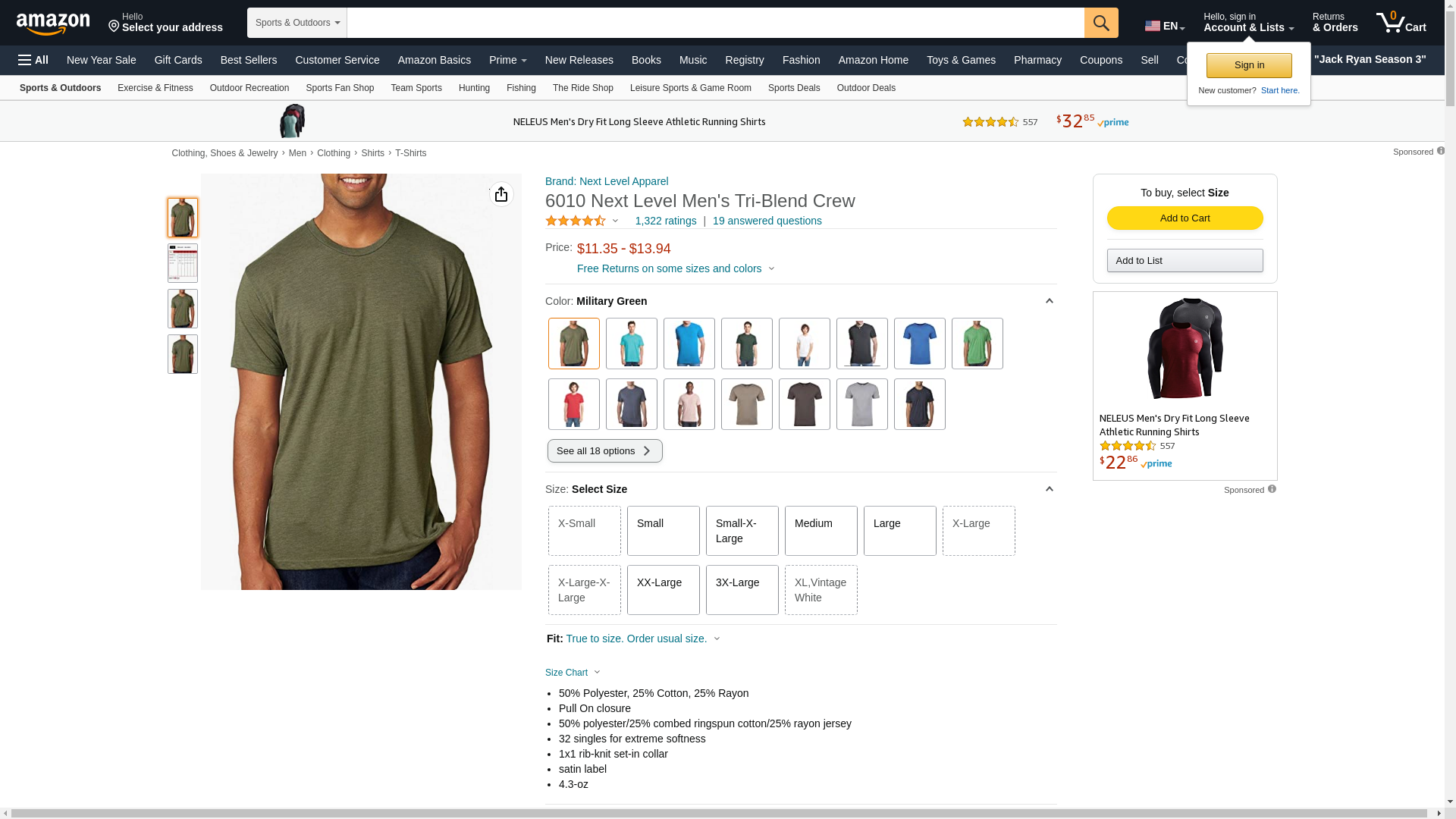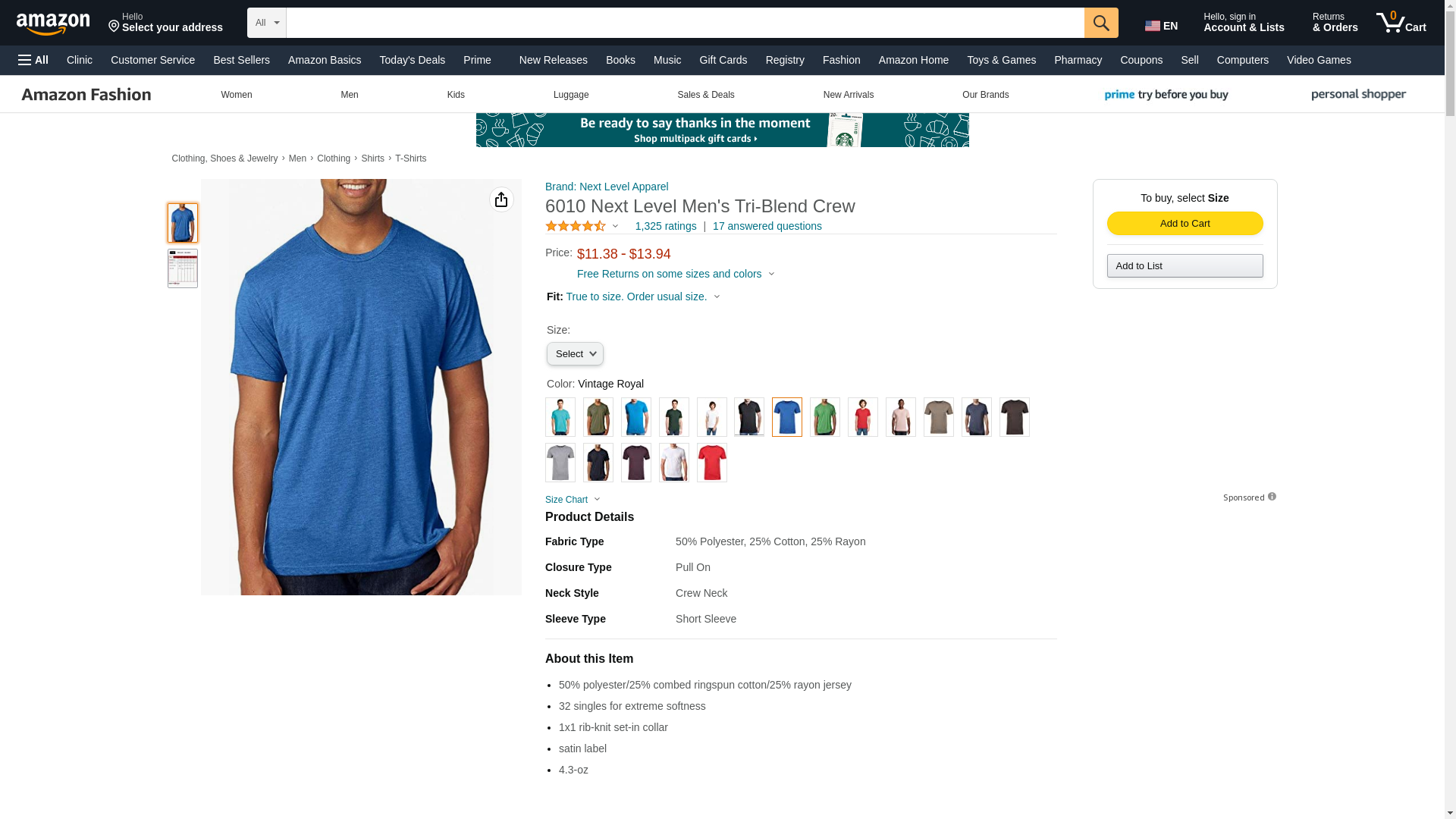 50% polyester/25% combed ringspun cotton/25% rayon jersey; 4.3 oz.; 32 singles; fabric laundered for reduced shrinkage; 1x1 baby rib-knit set-in collar; Satin label;