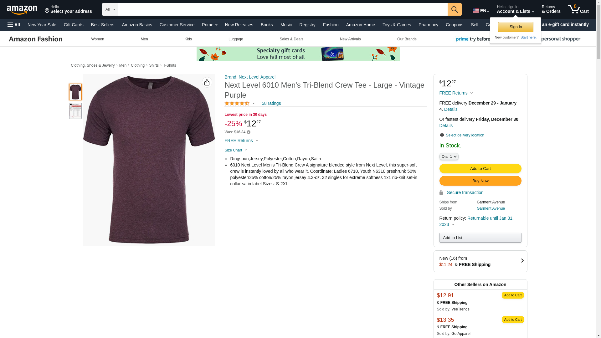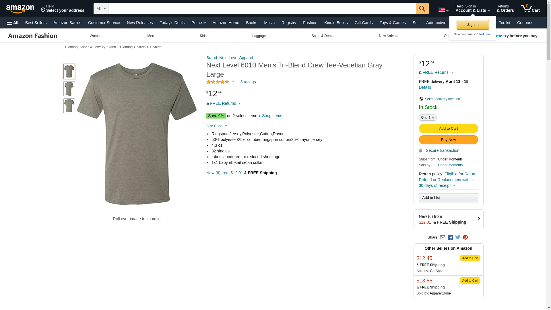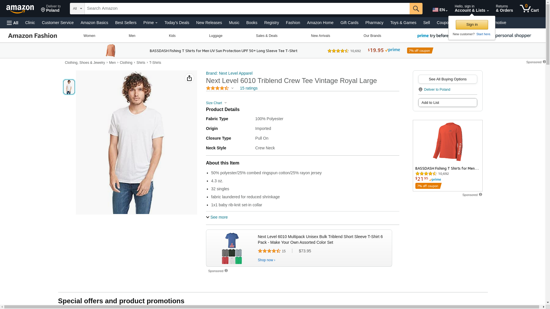 50% polyester/25% combed ringspun cotton/25% rayon jersey, 4,3 oz,, 32 singles, fabric laundered for reduced shrinkage, 1x1 baby rib-knit set-in collar, Satin label, Sideseamed