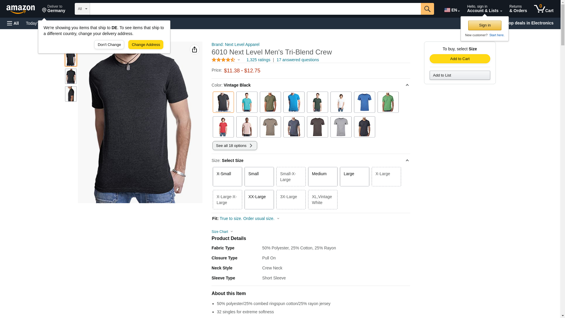 - 50% polyester, 25% combed ringspun cotton, 25% rayon jersey