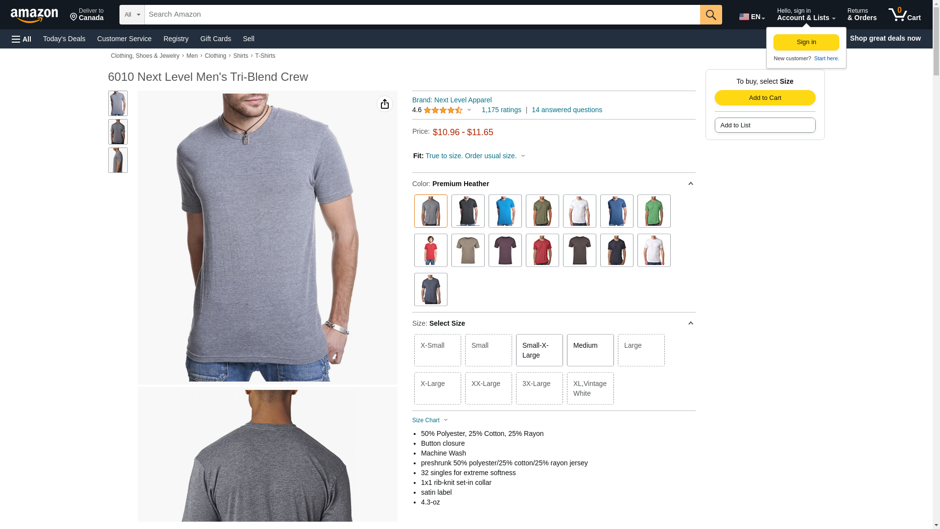 Material: 4.3 oz., 32 singles 50% polyester, 25% combed ringspun cotton, 25% rayon jersey Note: The Polyester content is transitioning to Recycled Polyester. Mixed inventory may occur. Fabric laundered for reduced shrinkage Feature: 1x1 baby rib-knit set-in collar Satin label Sideseamed