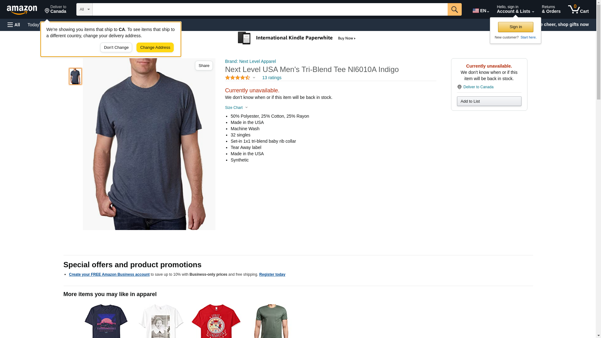 Next Level USA Men's Tri-Blend Tee Nl6010A Indigo