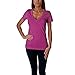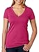 Next Level Women's Rib Knit Short Sleeve Deep V-Neck T-Shirt, Hot Pink, X-Large
