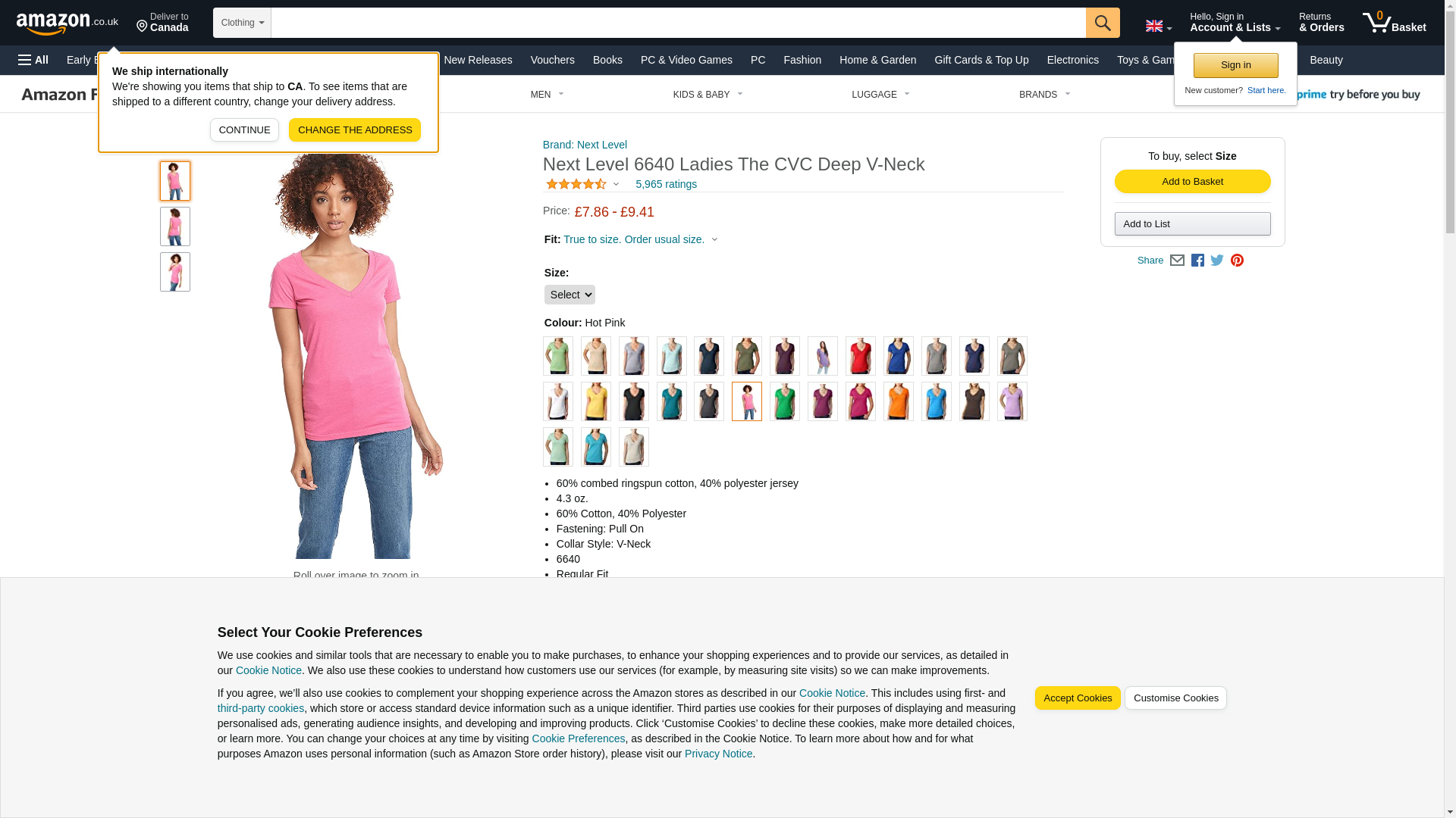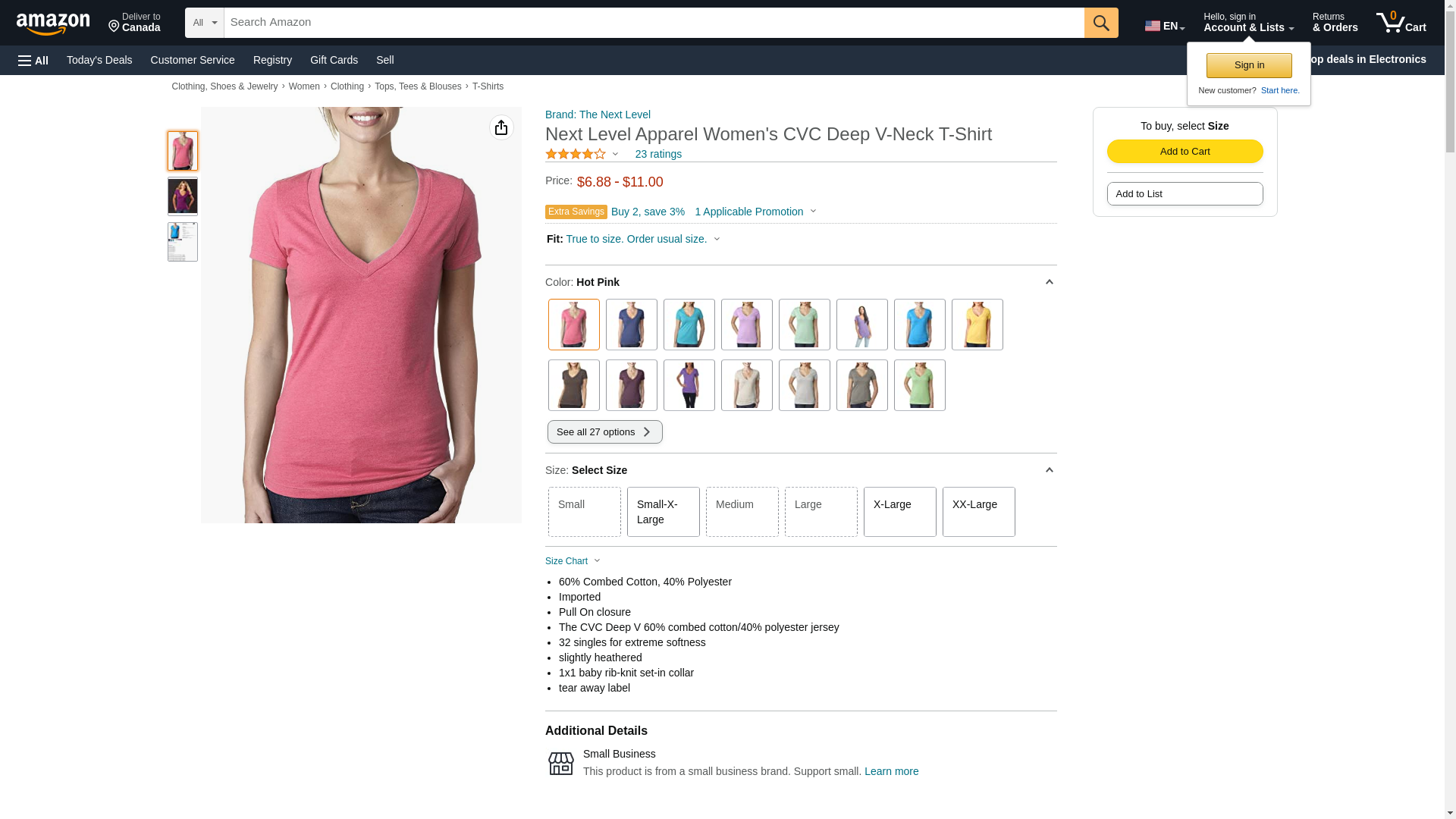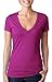 Next Level Apparel Ladies Juniors CVC Deep V-Neck T-Shirt. 6640 - L - Hot Pink