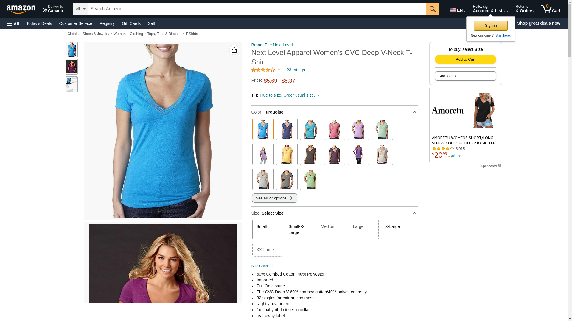 Next Level Womens CVC Deep V Tee 6640 -TURQUOISE M