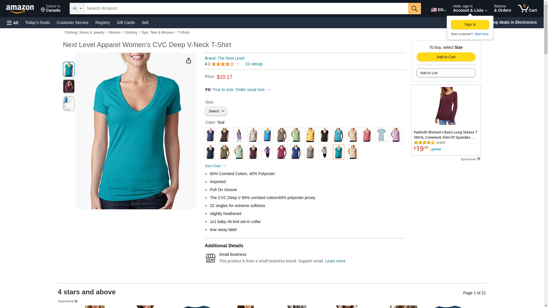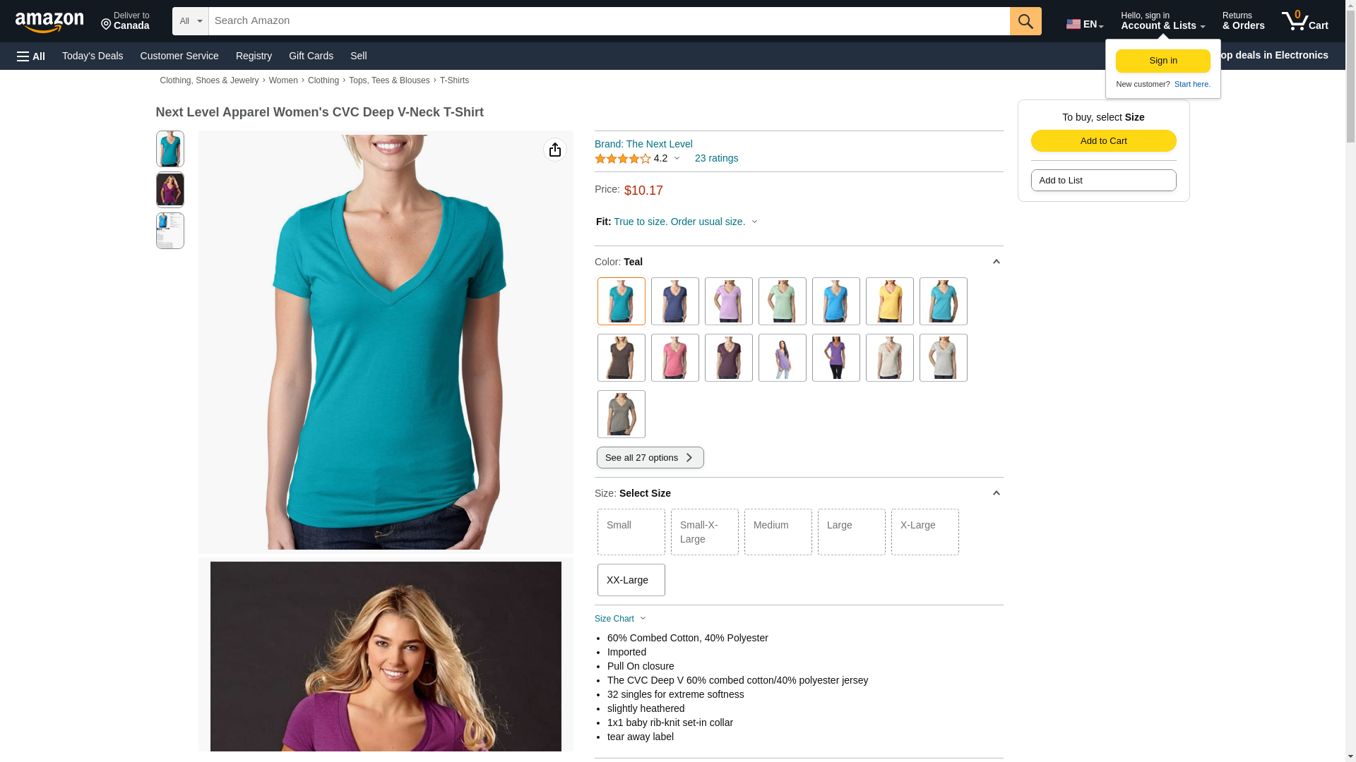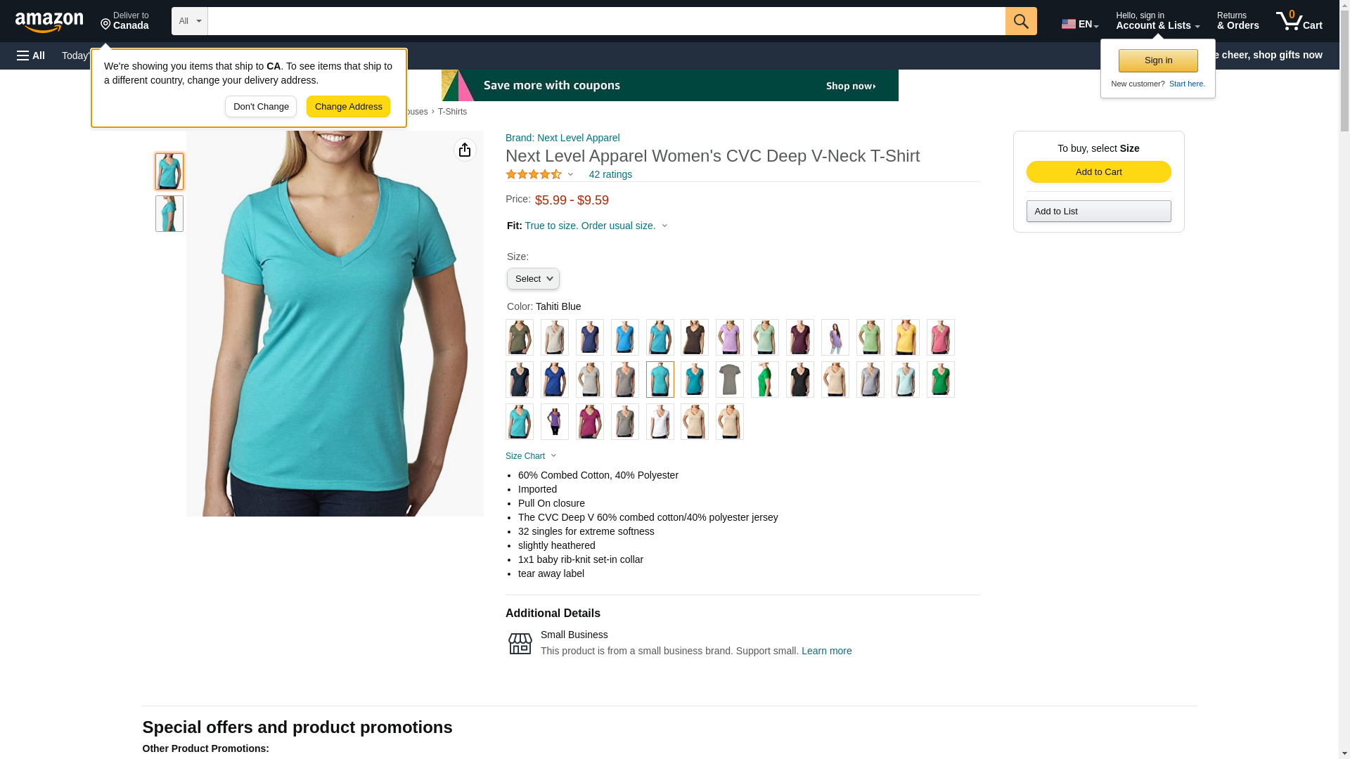 "Next Level Ladies' CVC Deep V-Neck Tee (Teal) (Small)"
