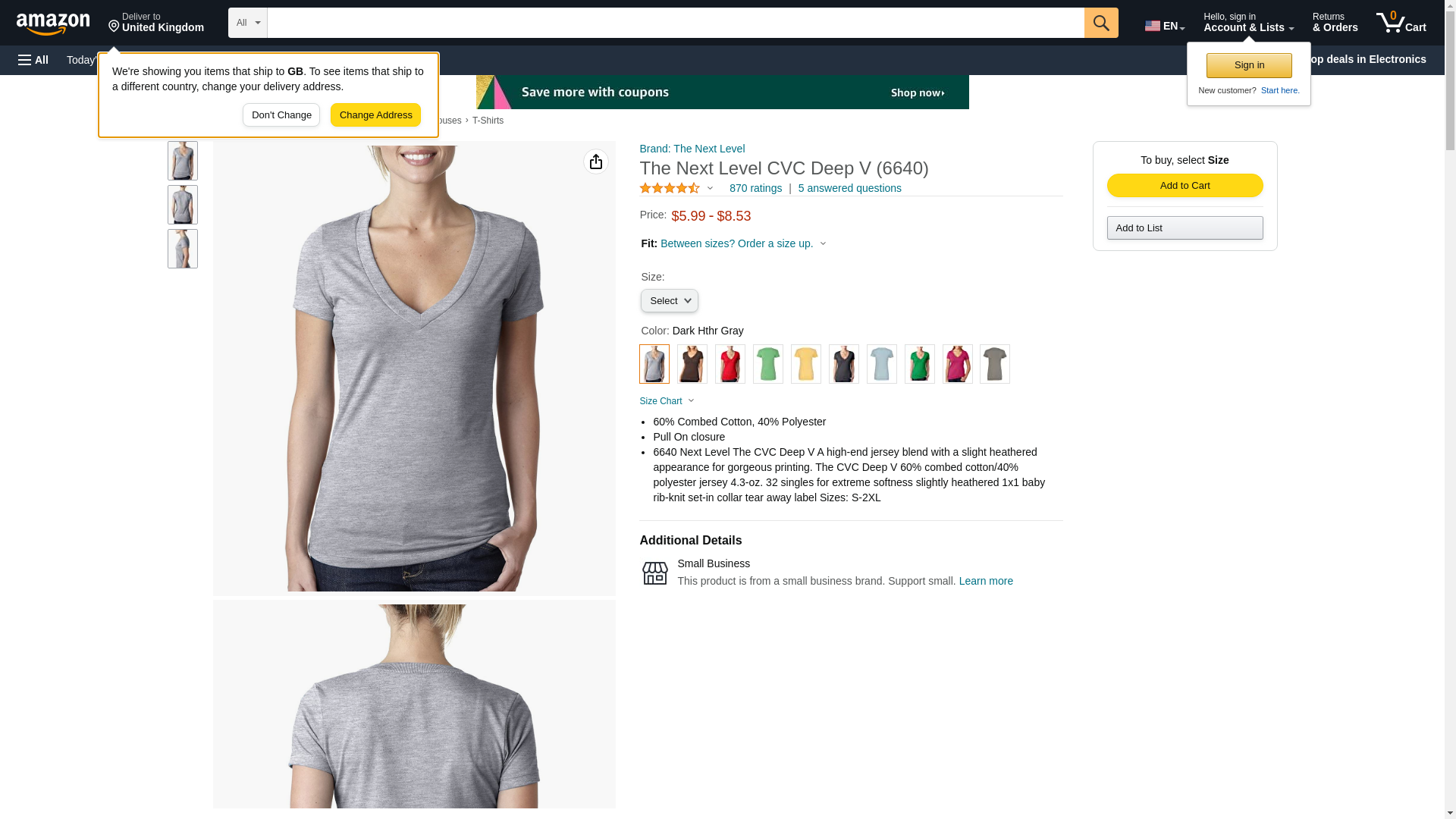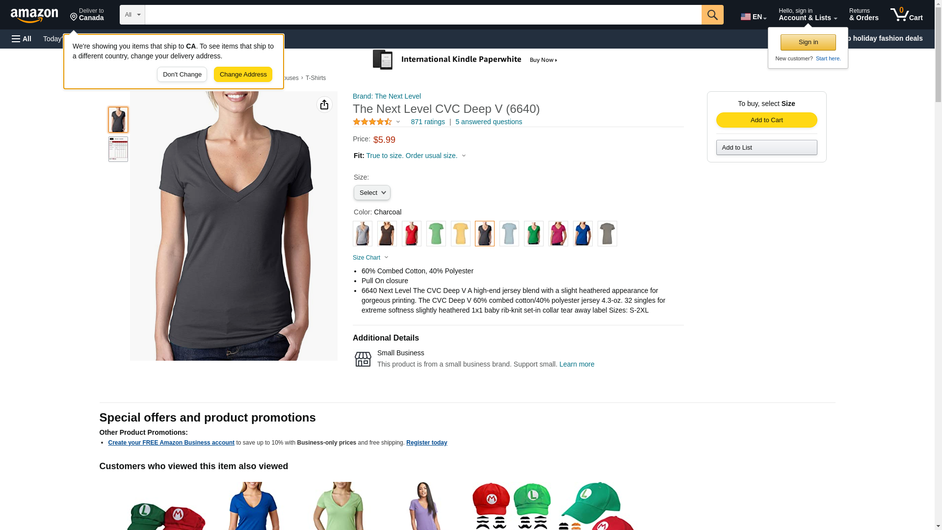 "Next Level Ladies' CVC Deep V-Neck Tee (Charcoal) (2X-Large)"