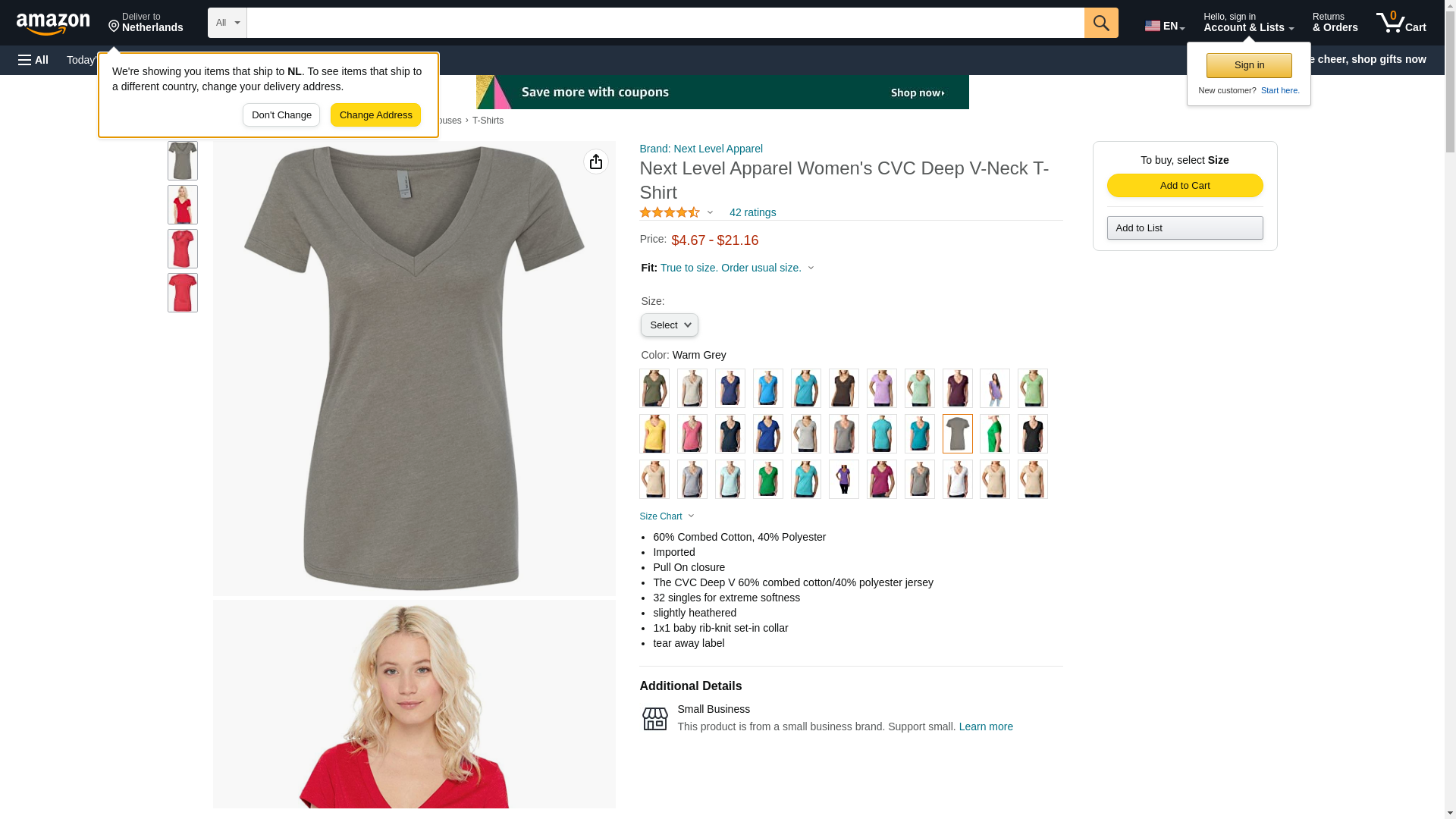 Next Level 6640 CVC Deep V Tee Warm Gray Small