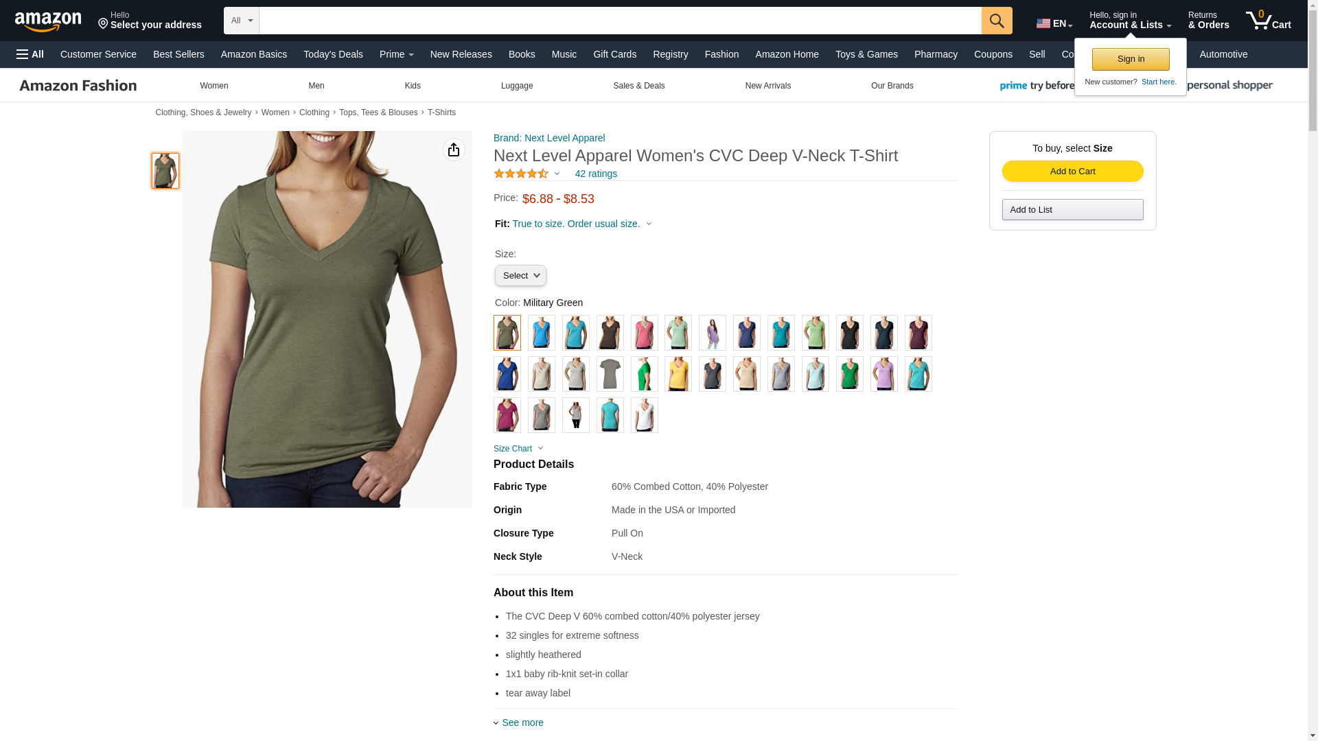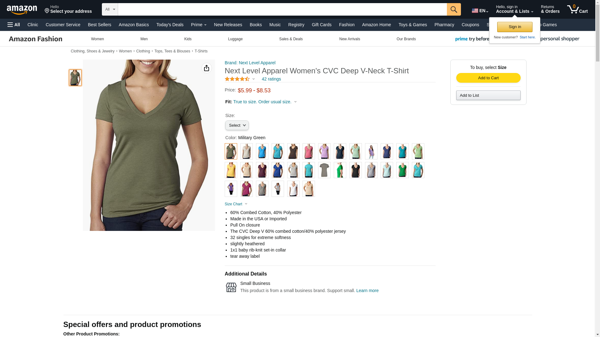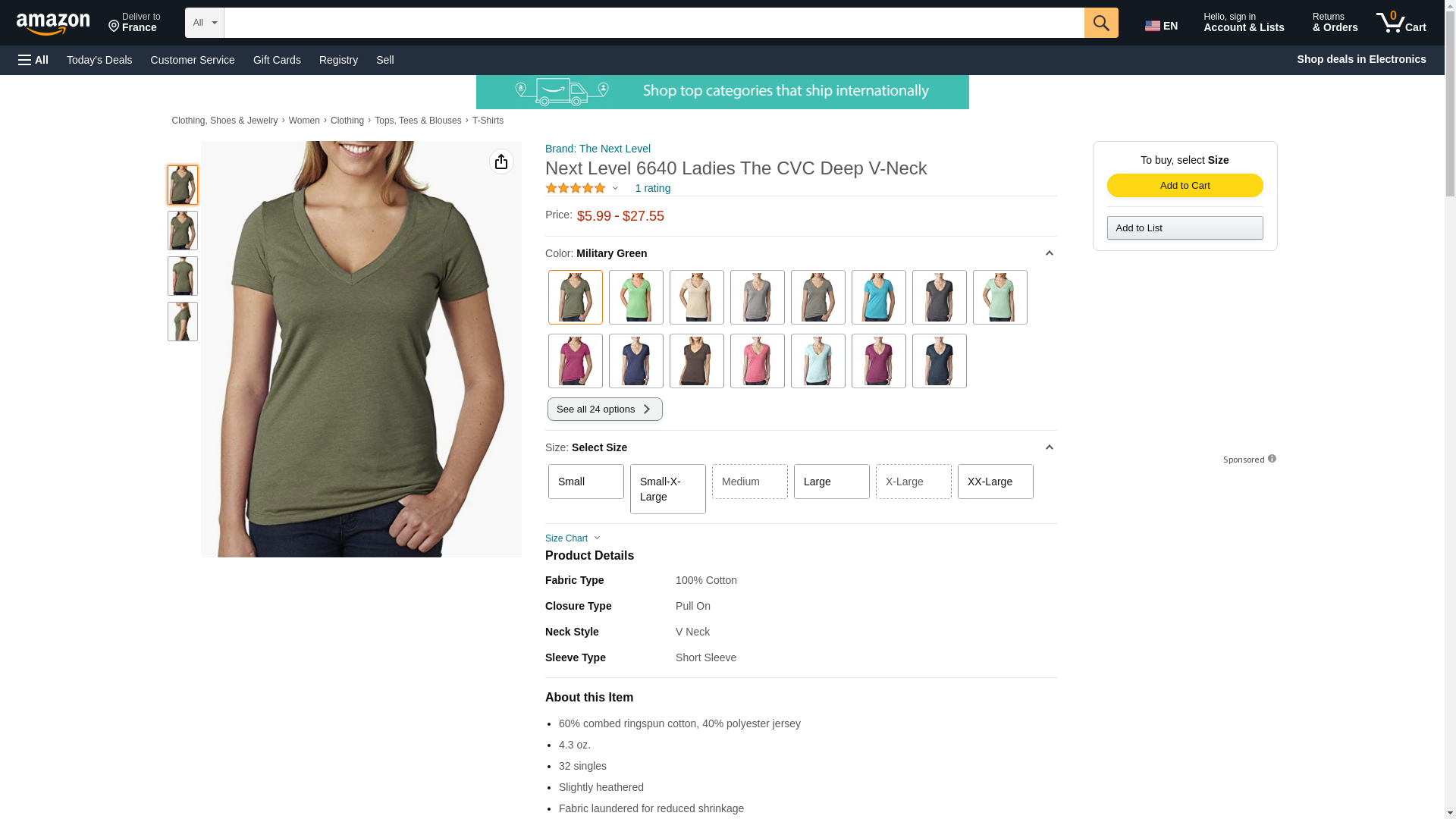 Next Level 6640 CVC Deep V Tee Military Green Small