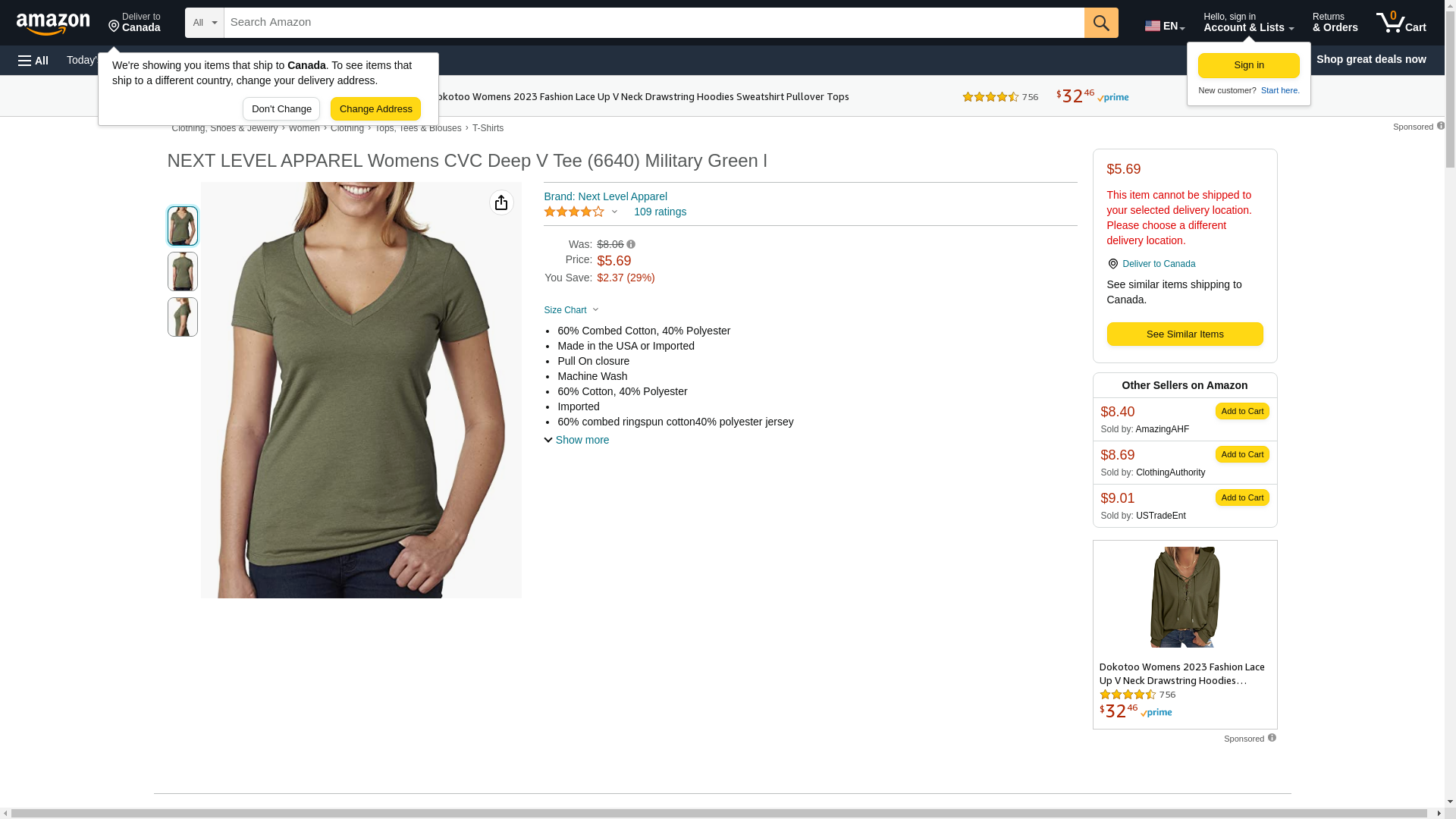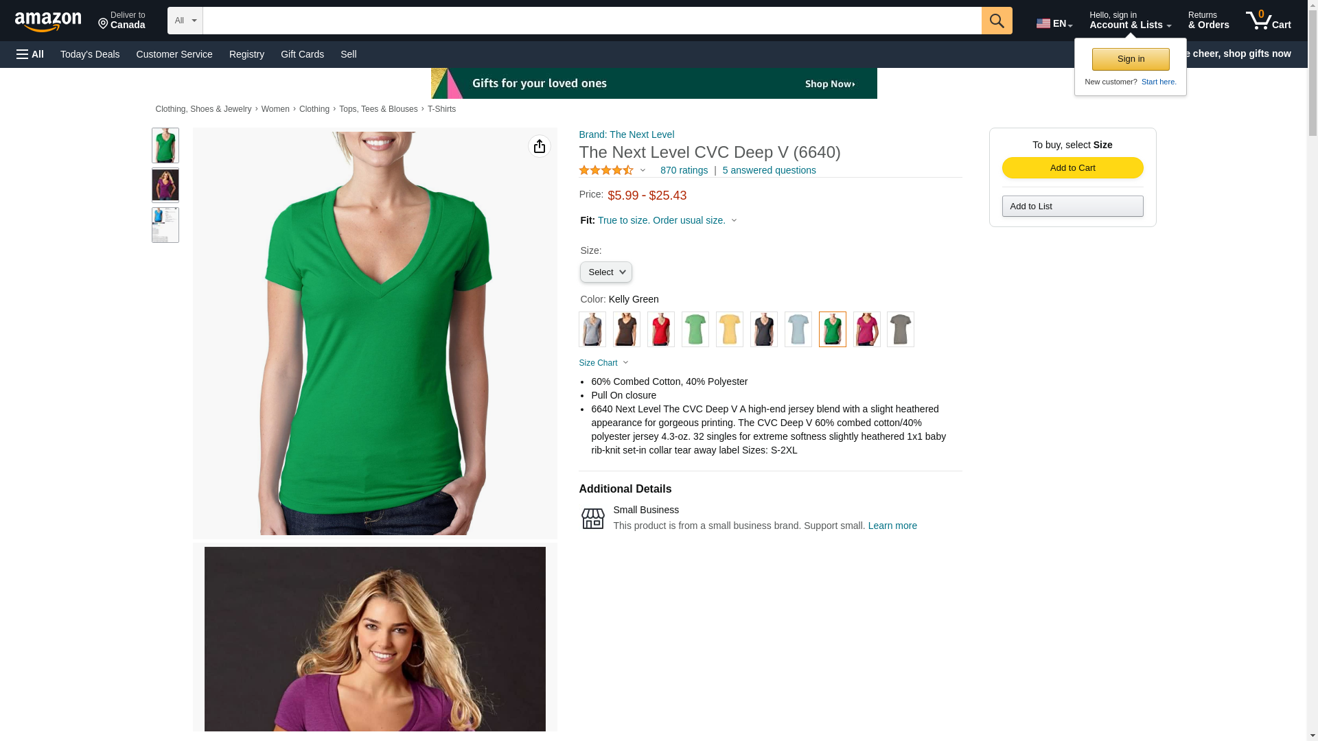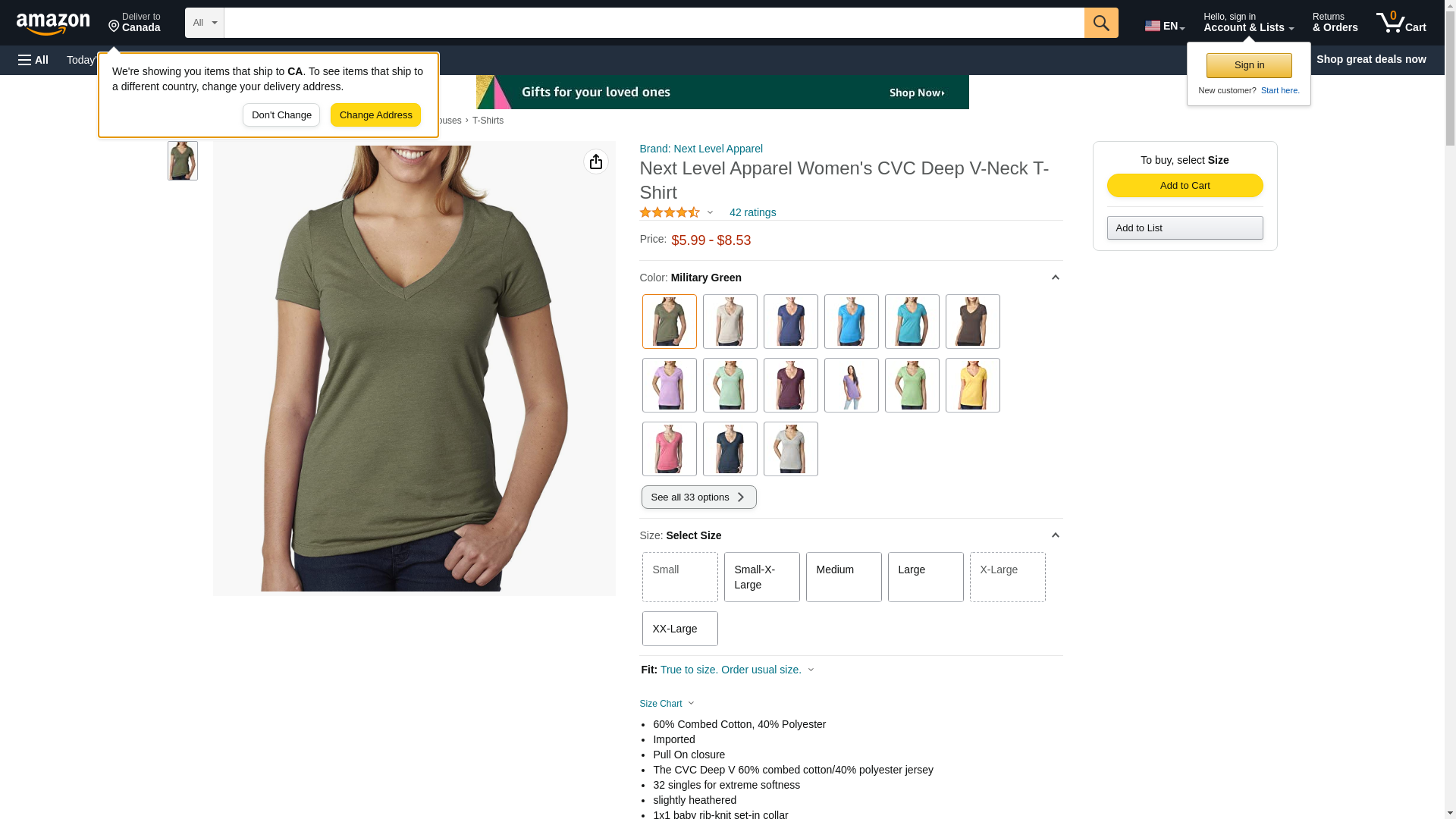 Next Level 6640 CVC Deep V Tee Military Green Small