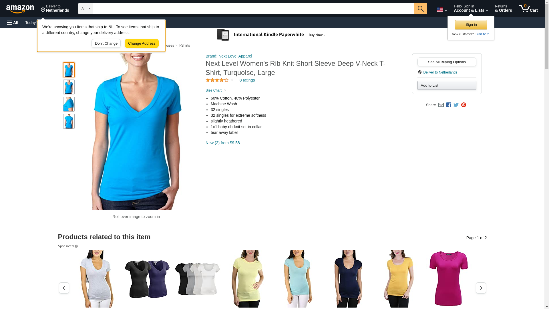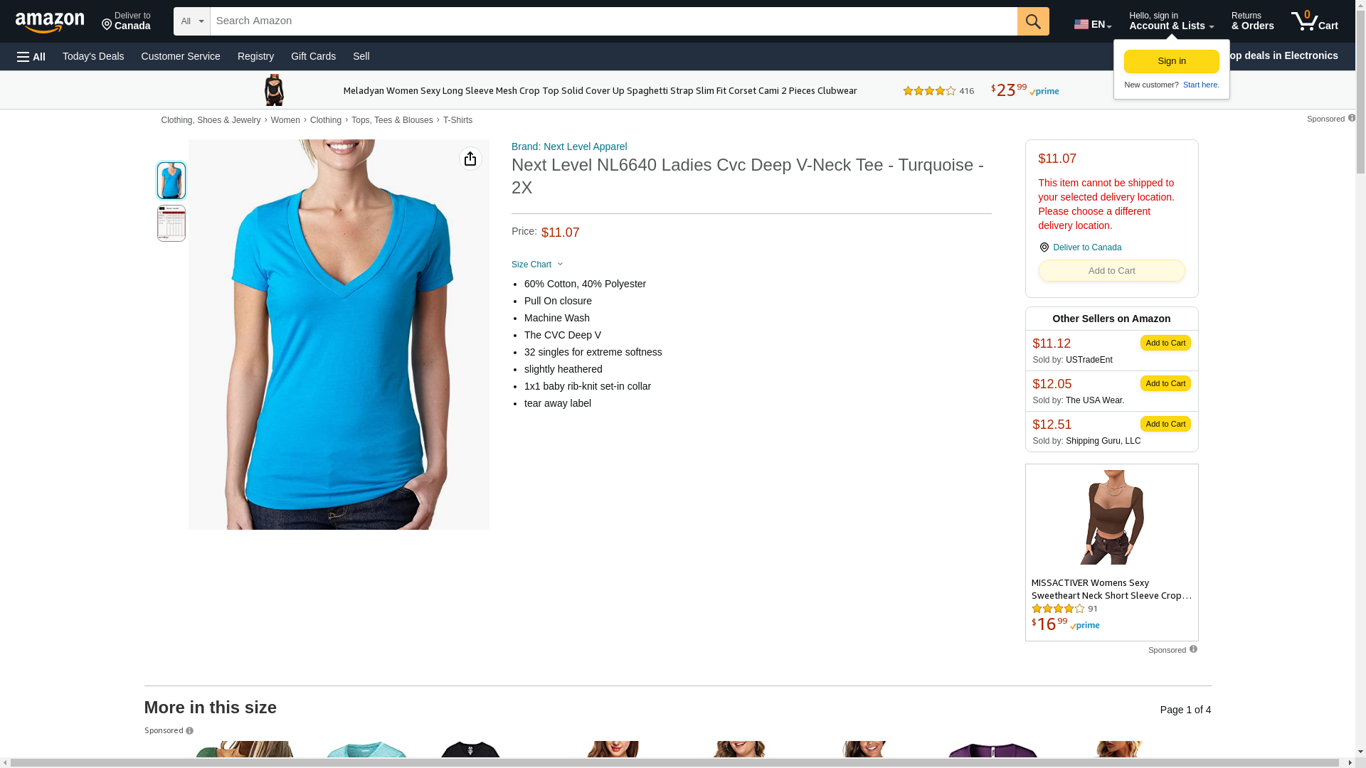 Next Level Ladies CVC Deep V - TURQUOISE - M - (Style # 6640 - Original Label)