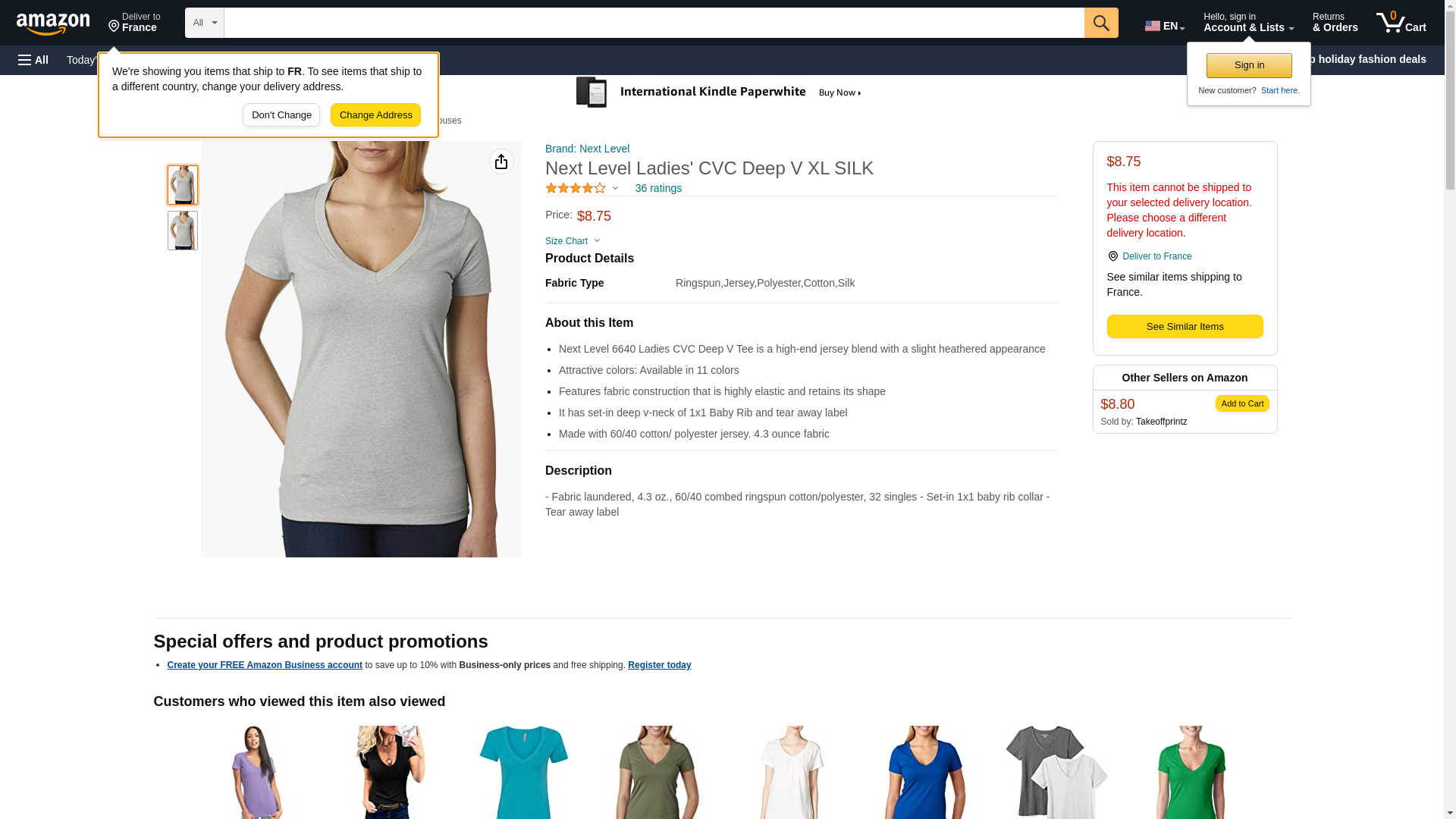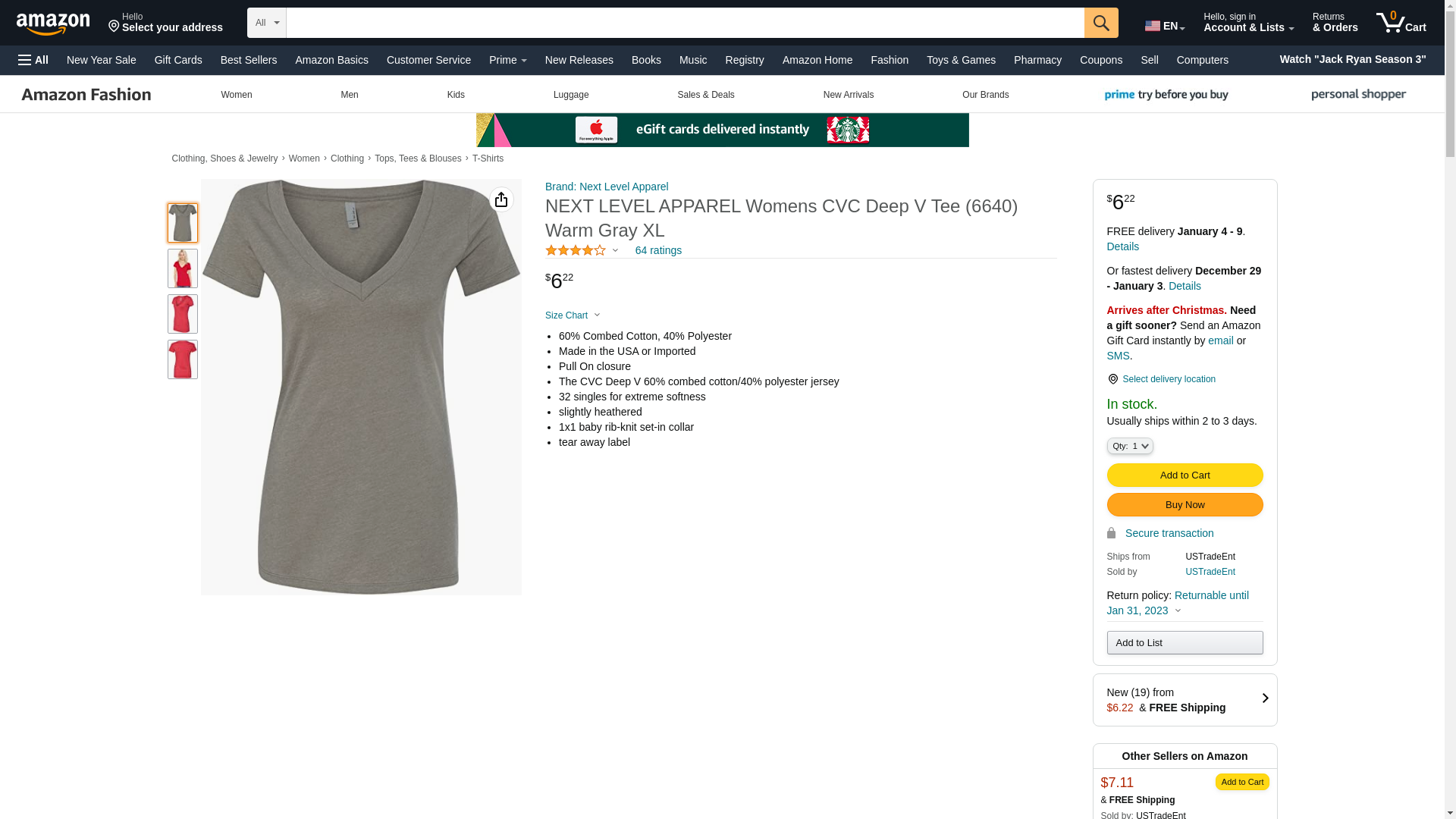 | Feature | The CVC Deep V 60% combed cotton/40% polyester jersey |