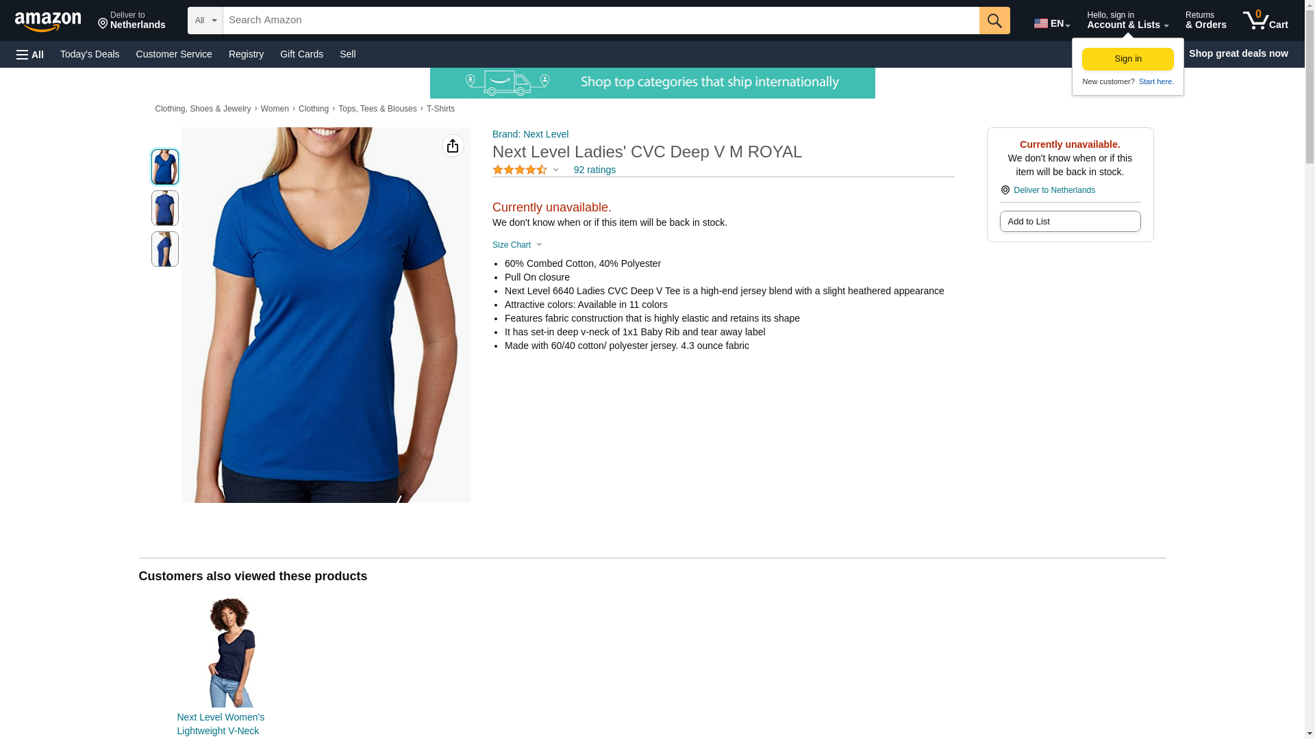Next Level 6640 CVC Deep V Tee Royal Small