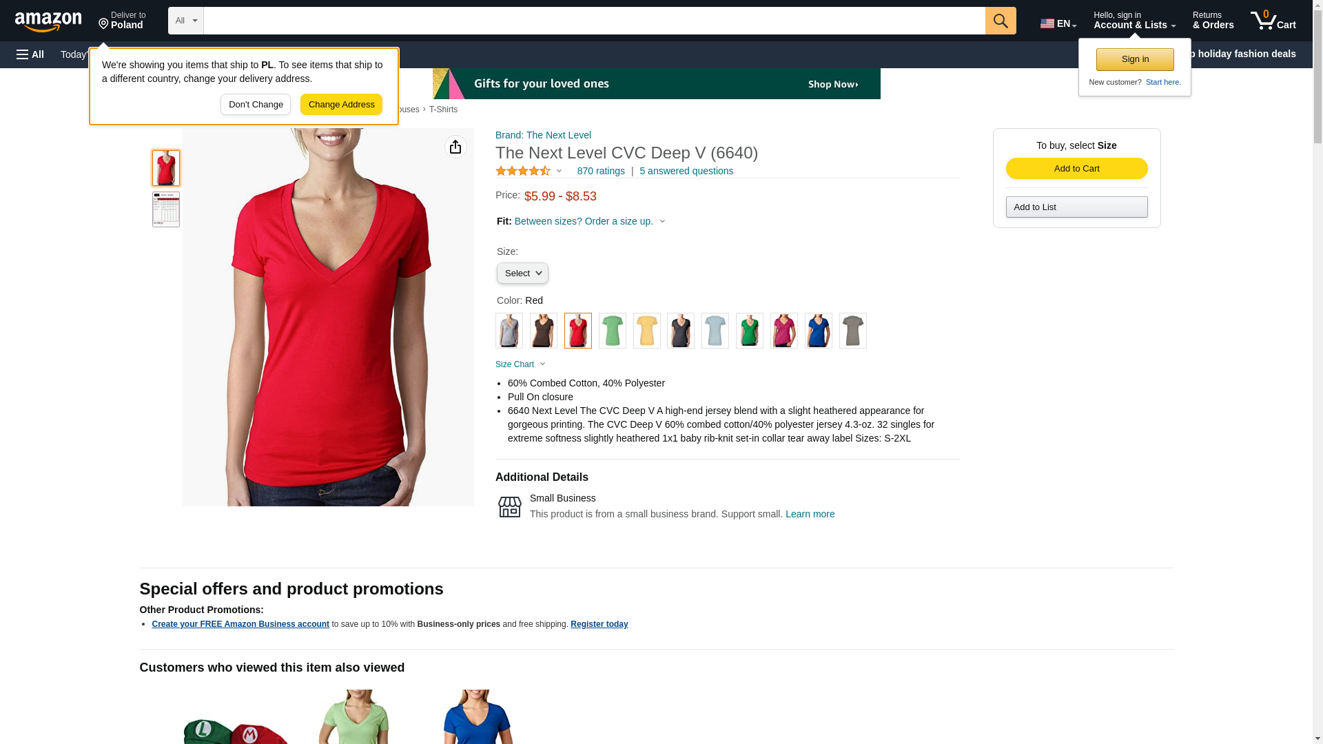 Next Level 6640 CVC Deep V Tee Red Small