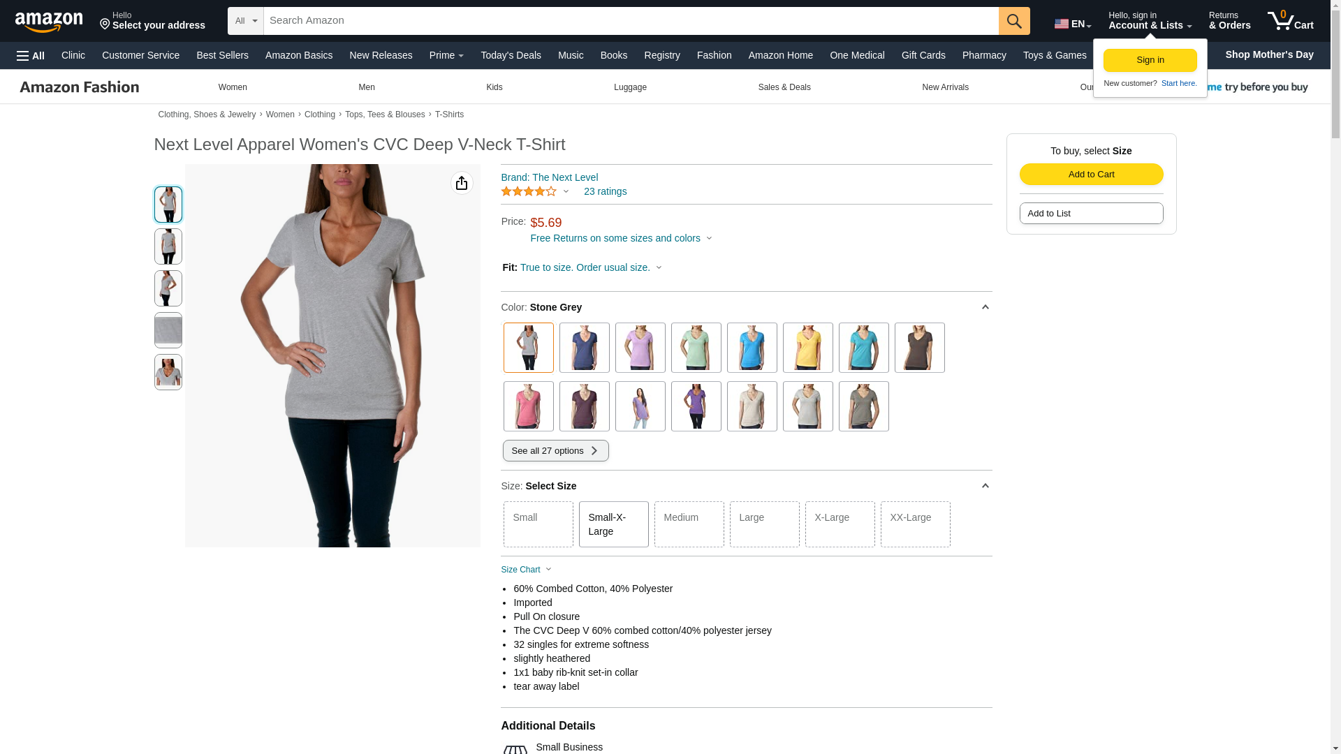 Next Level 6640 CVC Deep V Tee Stone Grey X-Large