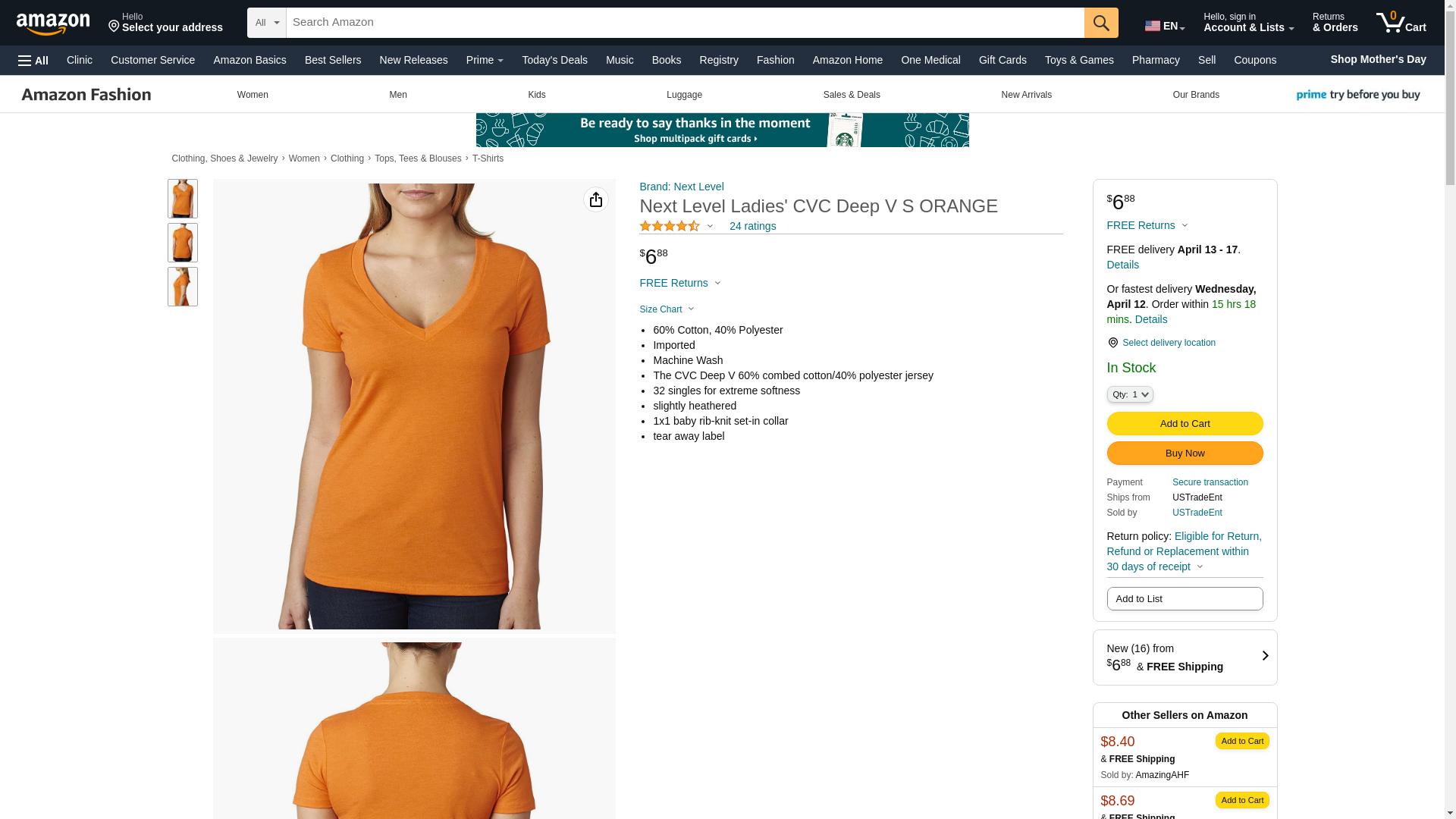 Next Level 6640 CVC Deep V Tee Orange Medium