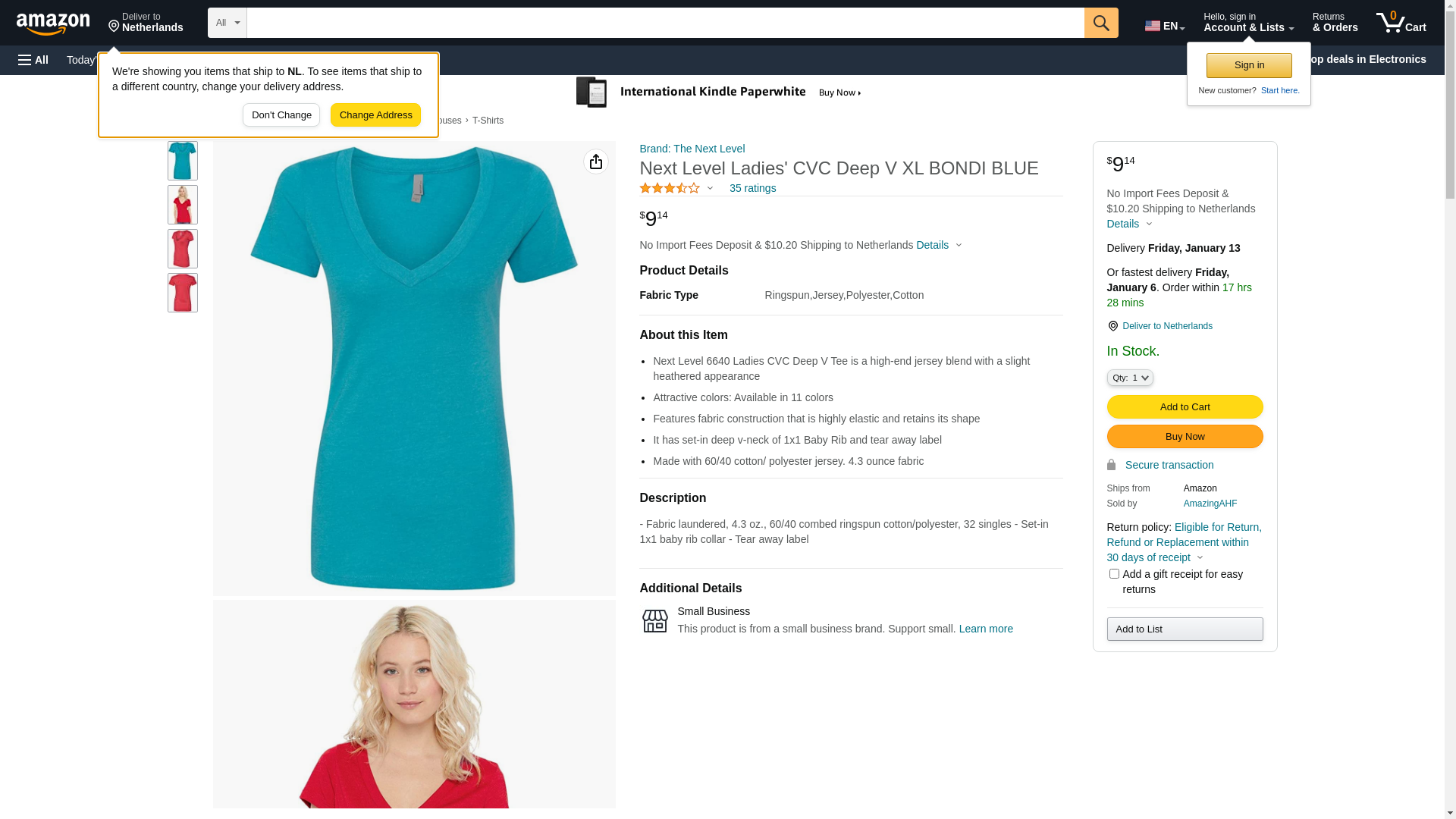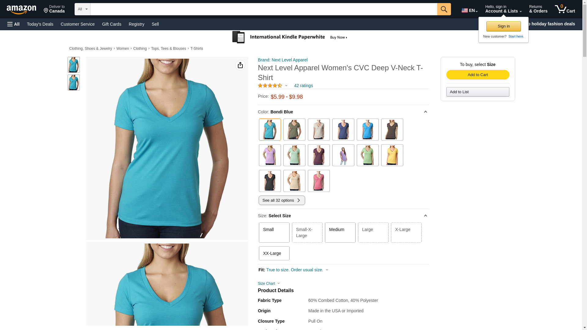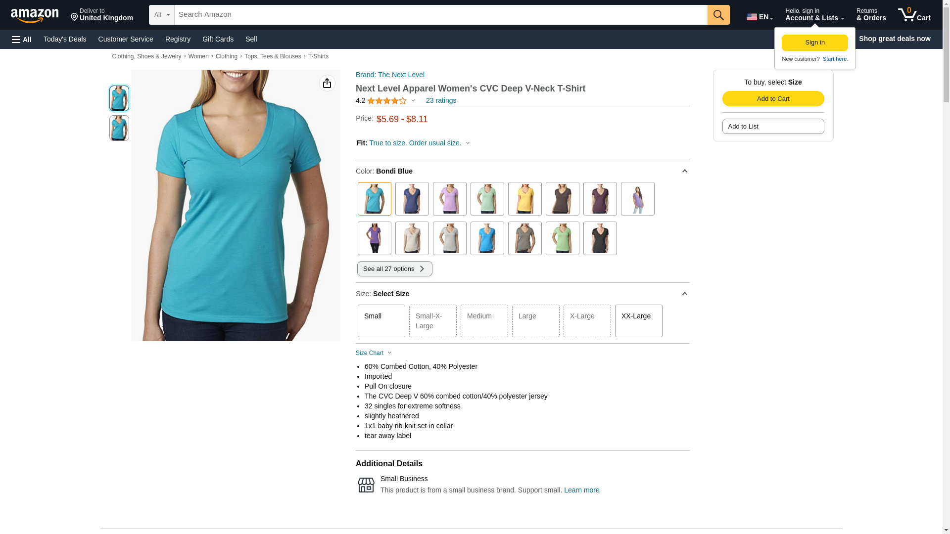 Next Level 6640 CVC Deep V Tee Bondi Blue X-Large