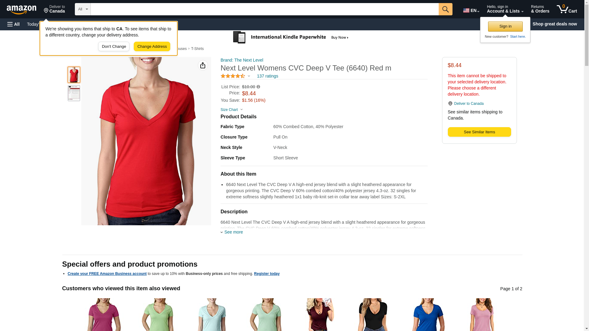 Next Level 6640 CVC Deep V Tee Red XX-Large