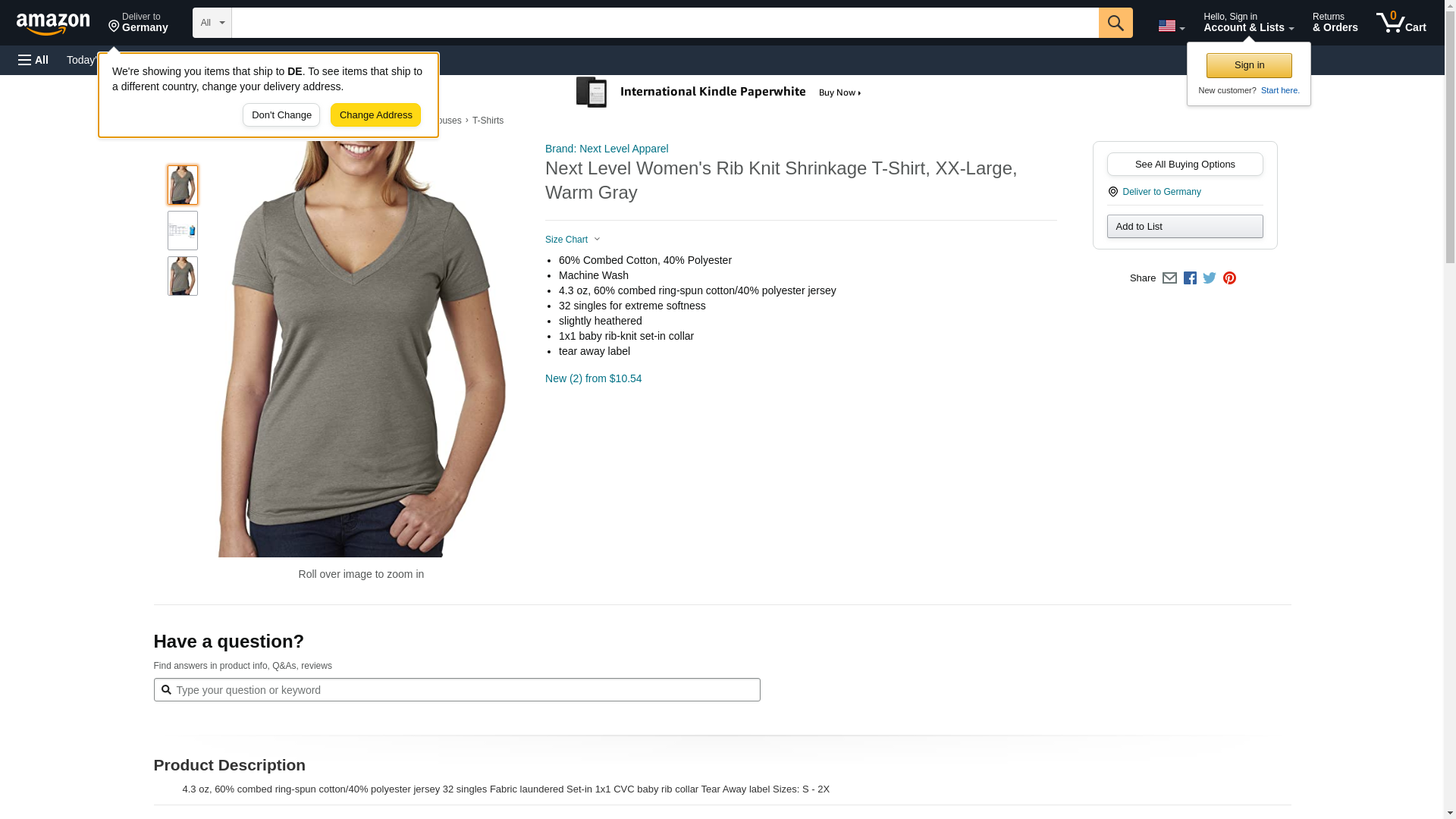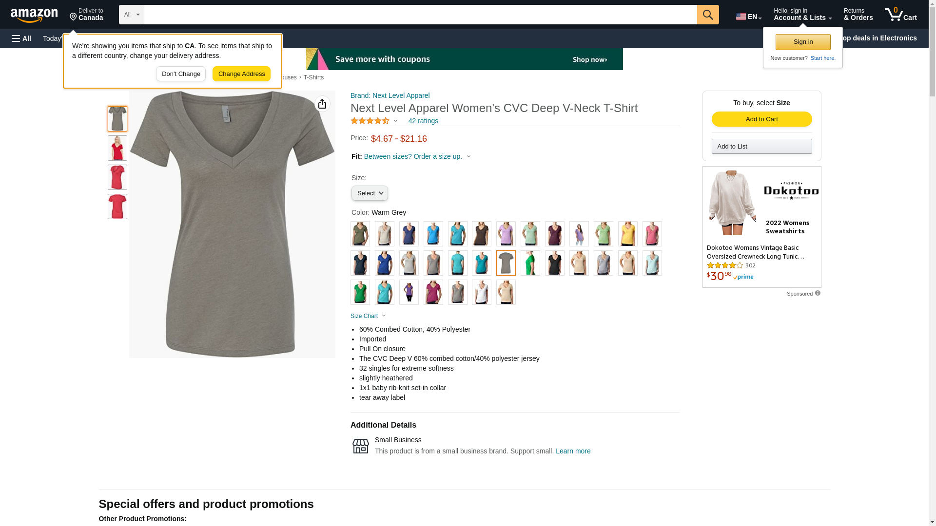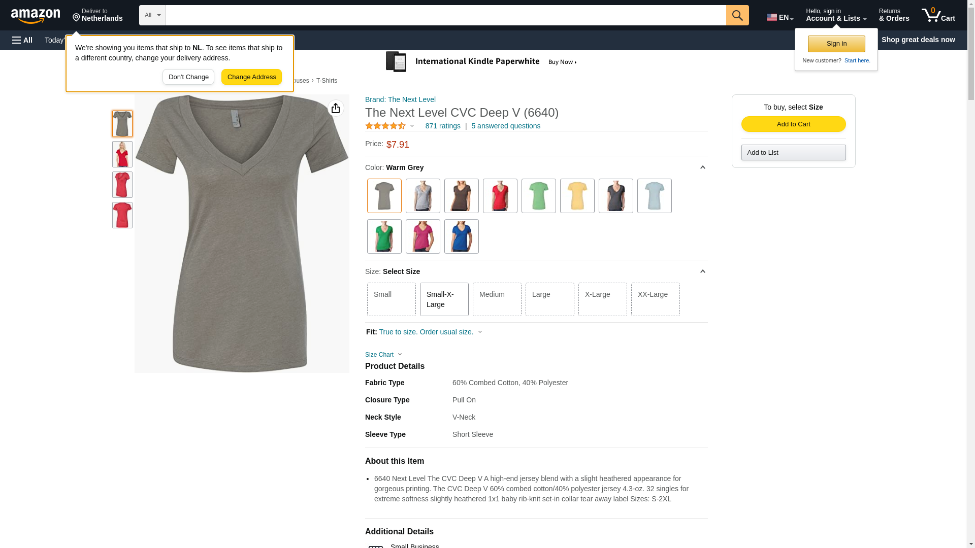 Next Level 6640 CVC Deep V Tee Warm Gray XX-Large