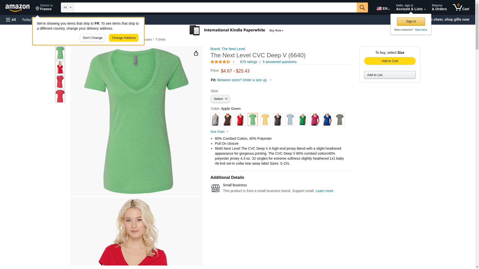 Next Level 6640 CVC Deep V Tee Apple Green Large