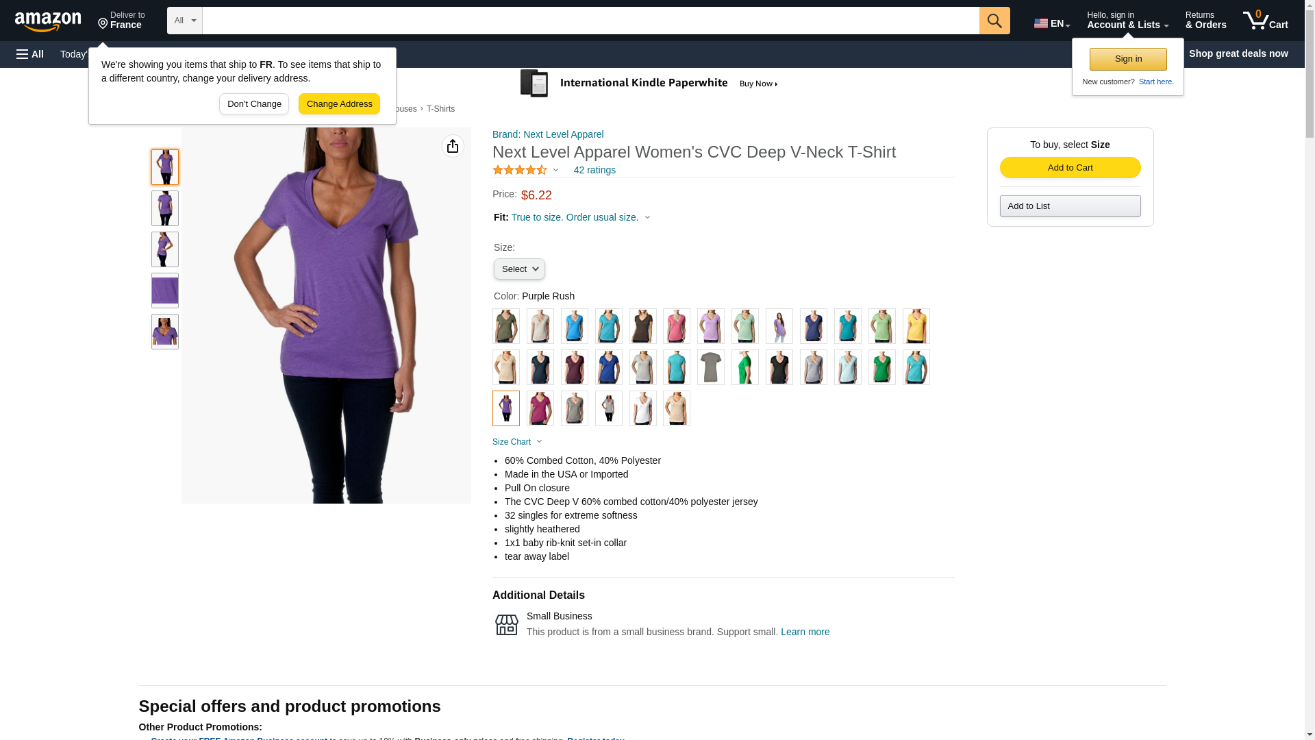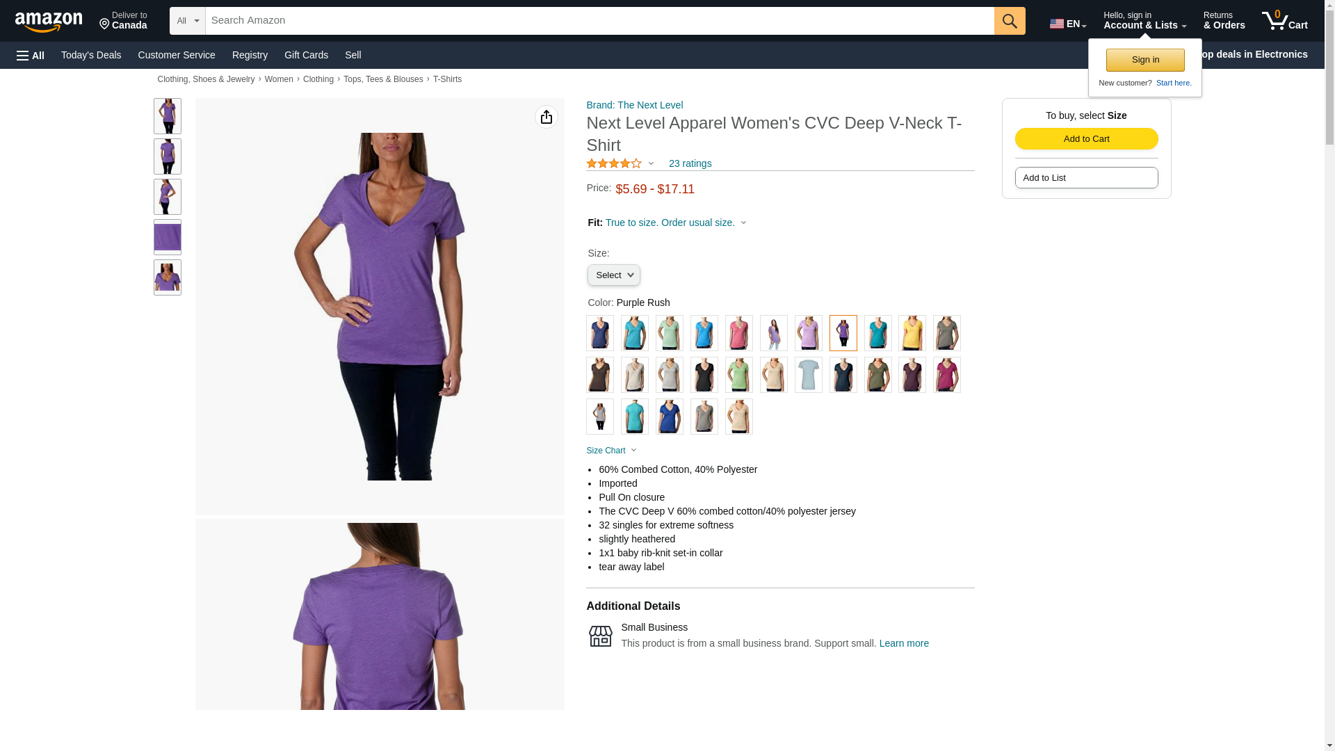 Next Level 6640 CVC Deep V Tee Purple Rush Small