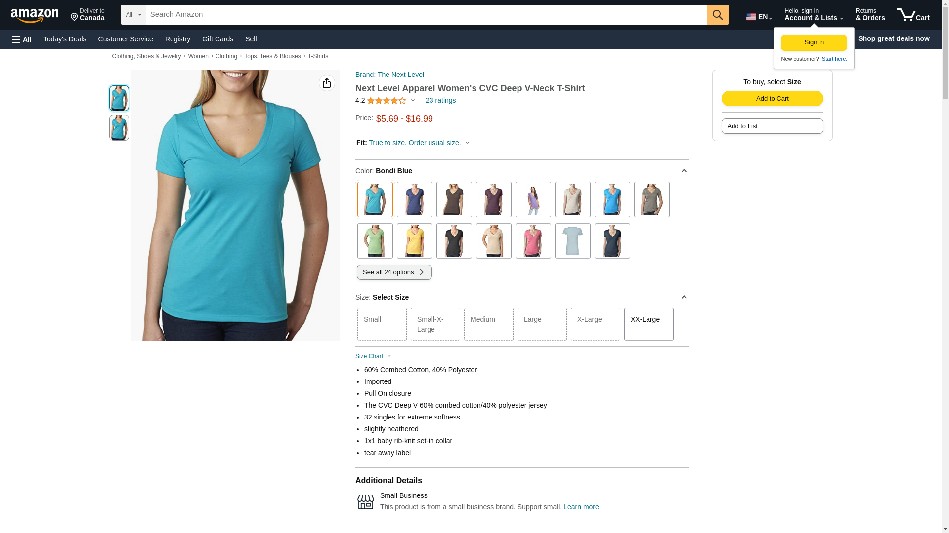Next Level 6640 CVC Deep V Tee Bondi Blue XX-Large