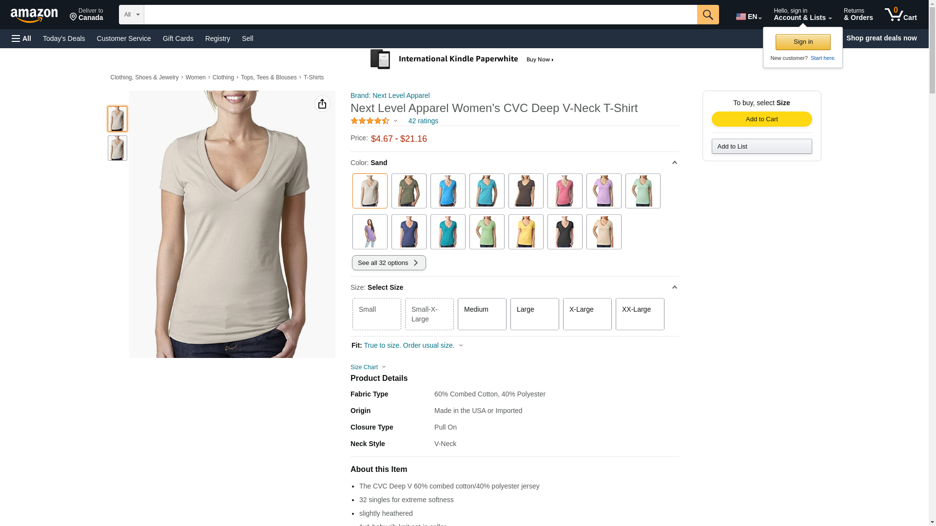 Next Level 6640 CVC Deep V Tee Sand XX-Large