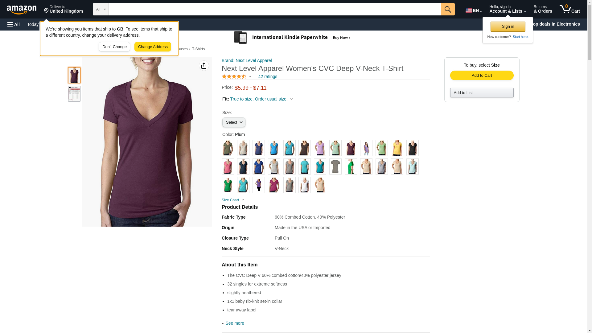 Next Level 6640 CVC Deep V Tee Plum Medium