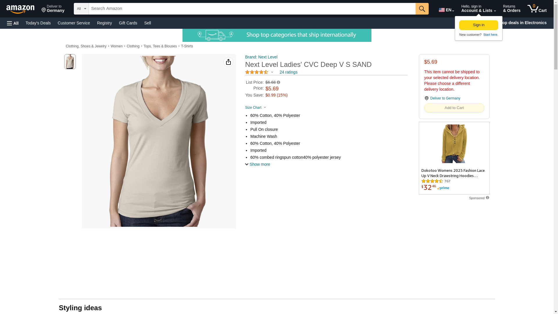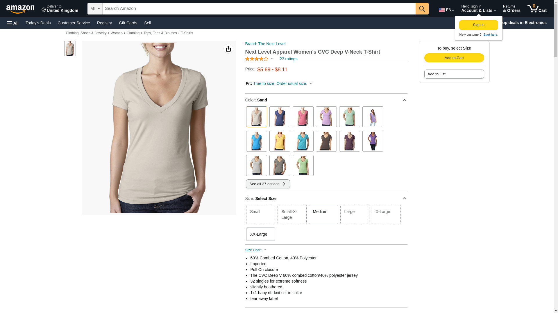 Next Level 6640 CVC Deep V Tee Sand Small