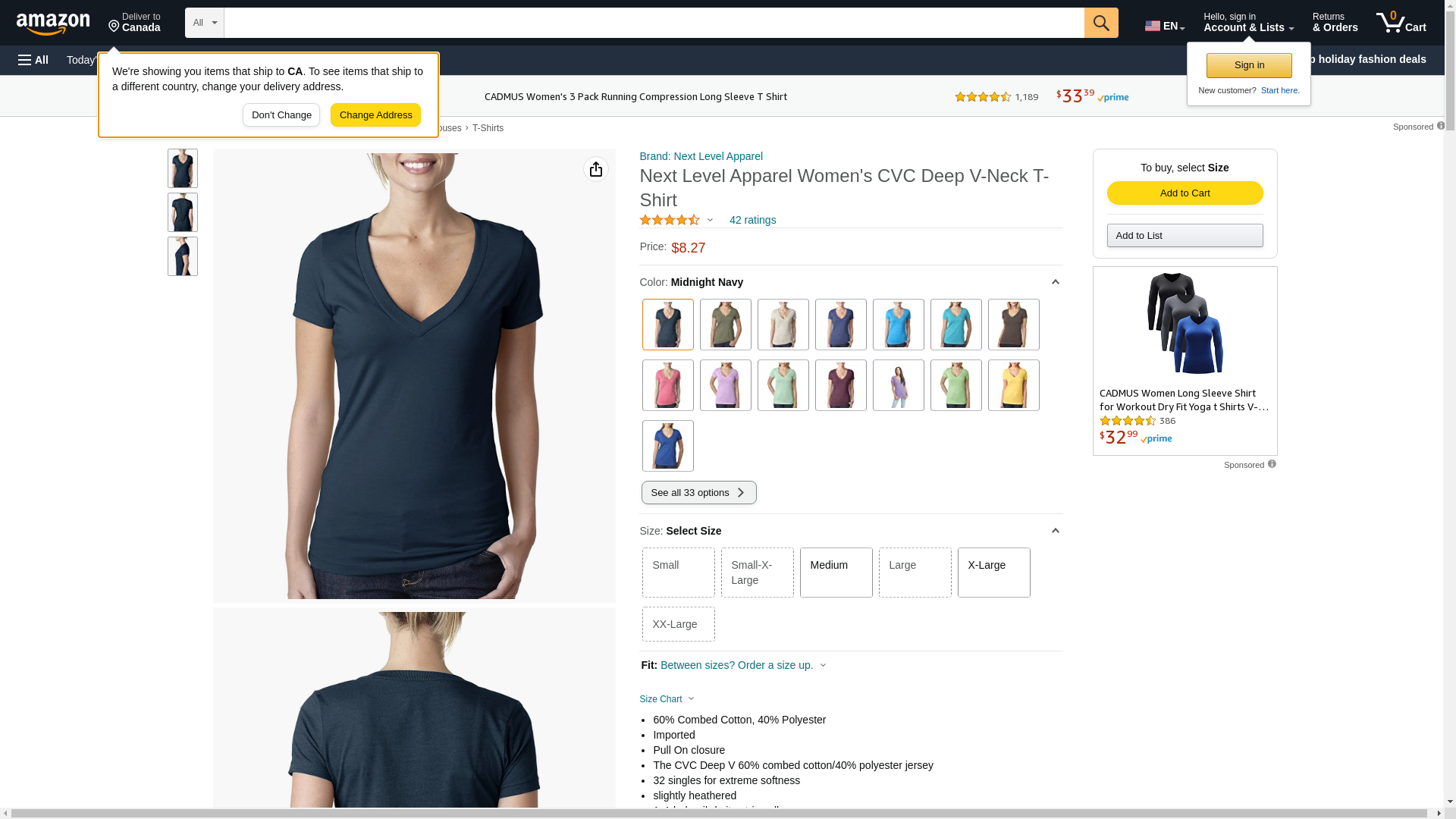 Next Level 6640 CVC Deep V Tee Silk Large
