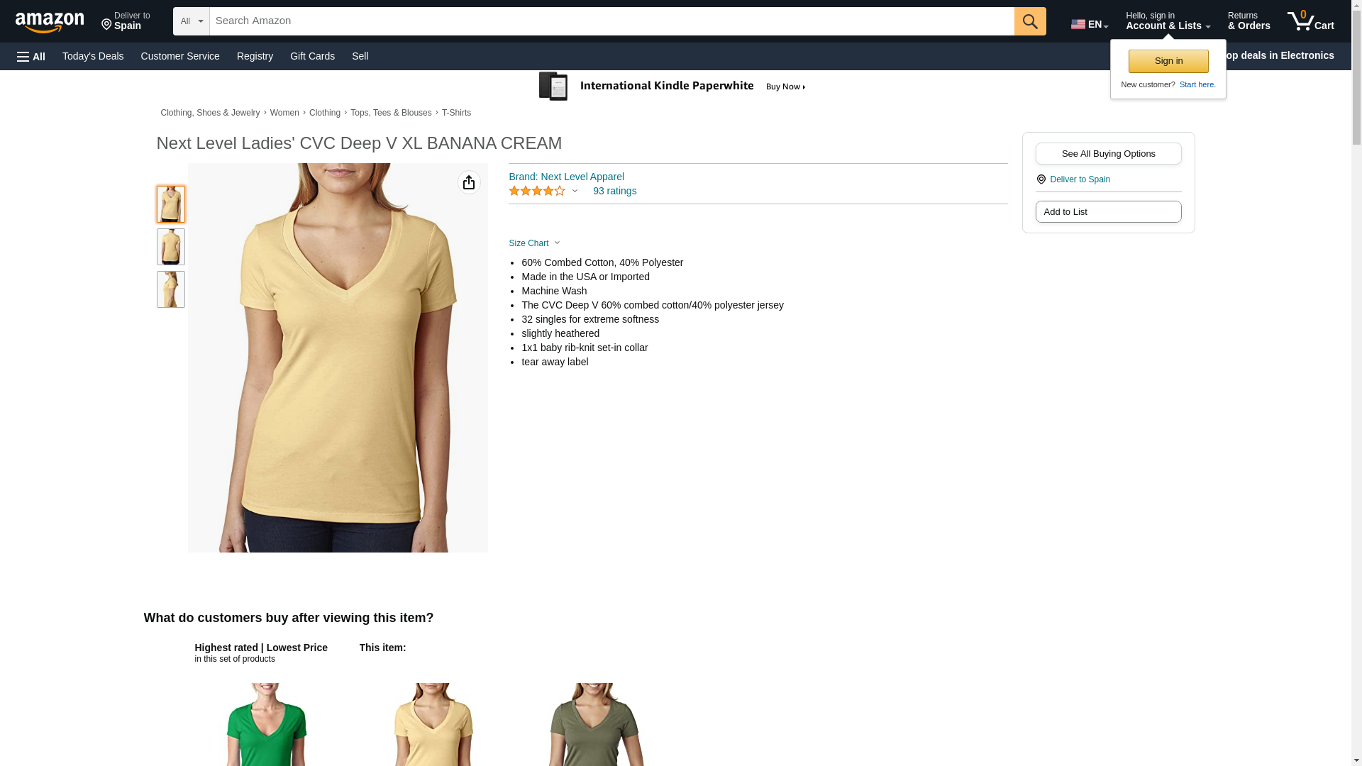 Next Level 6640 CVC Deep V Tee Banana Cream X-Large