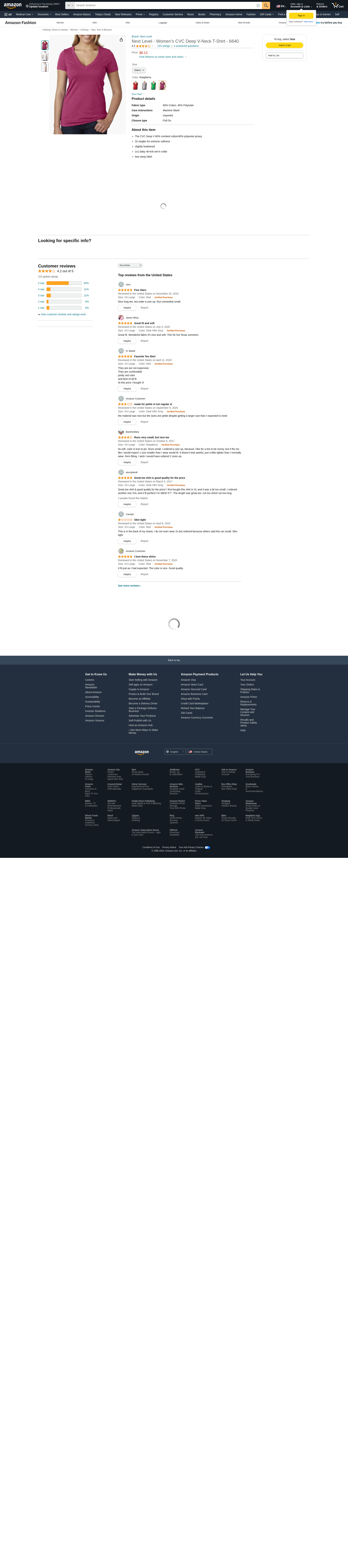 Next Level 6640 CVC Deep V Tee Raspberry X-Large