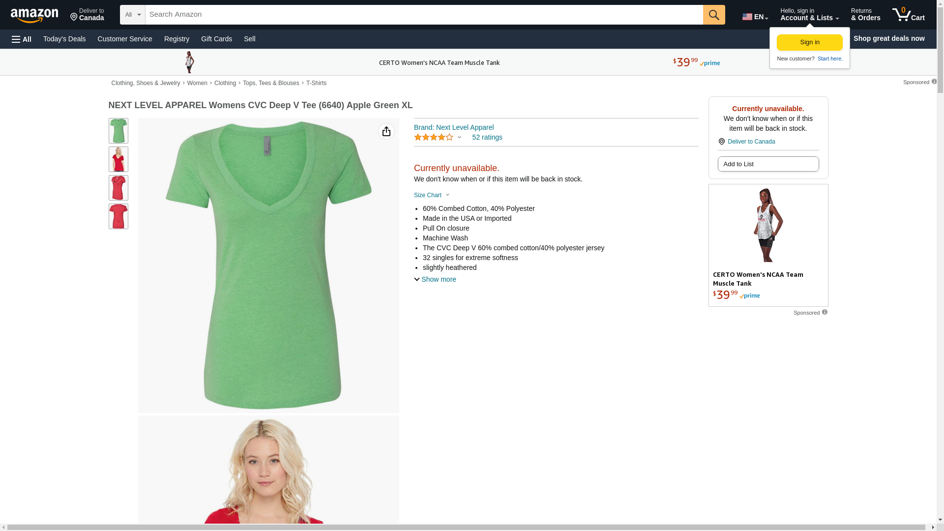 "Next Level Ladies' CVC Deep V-Neck Tee (Lush) (X-Large)"