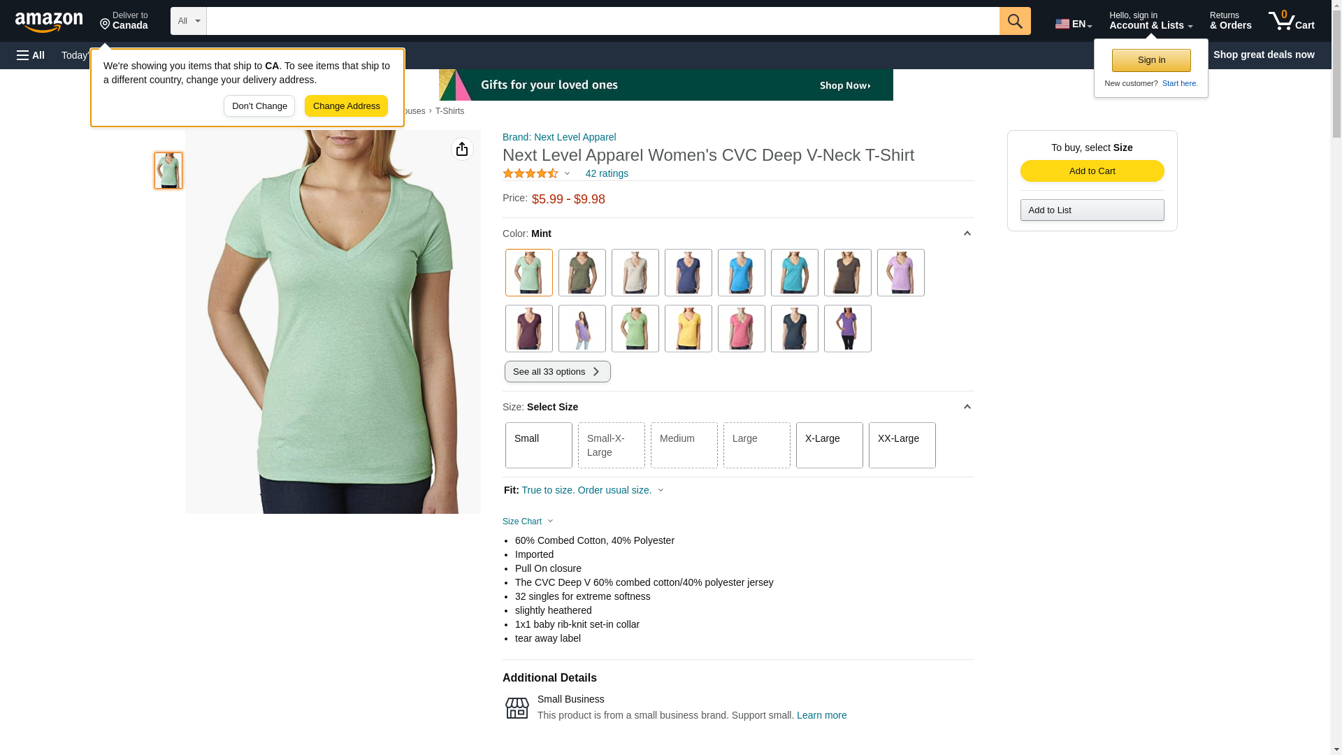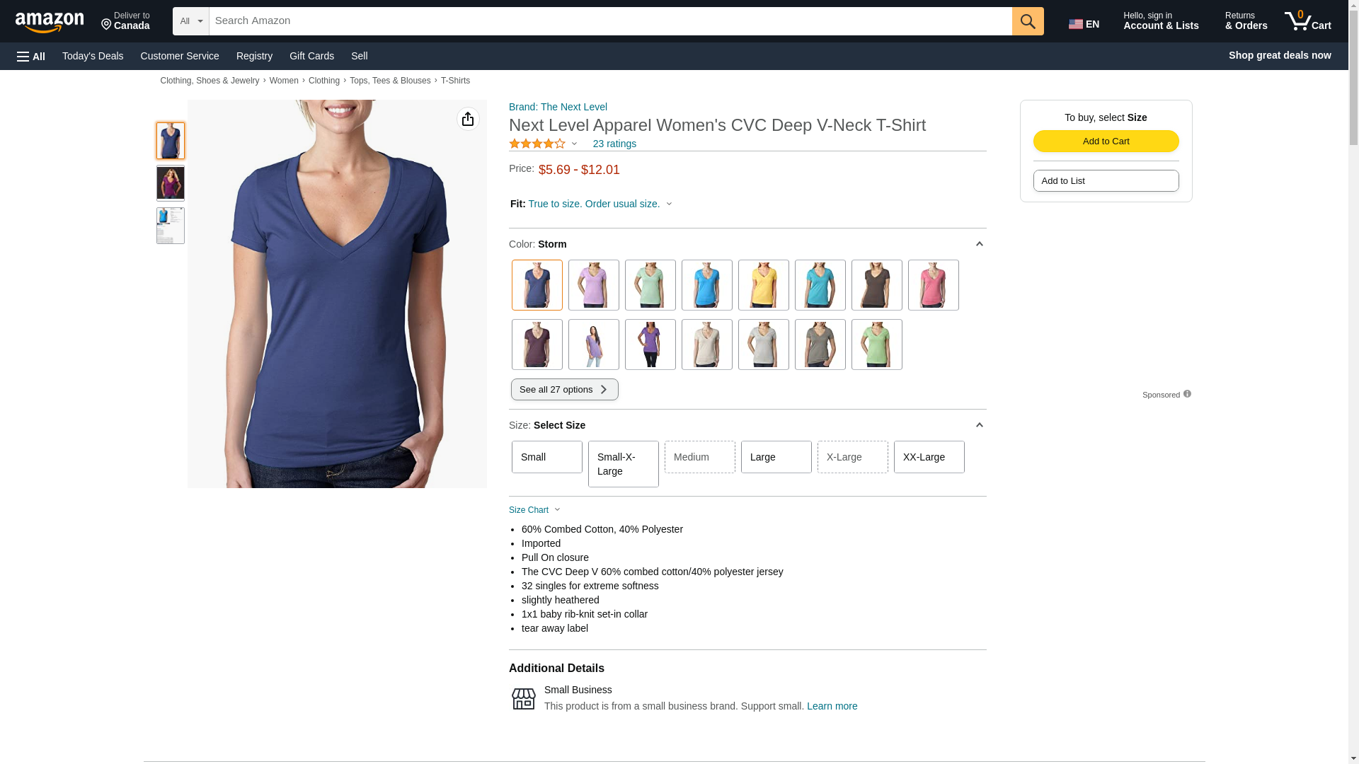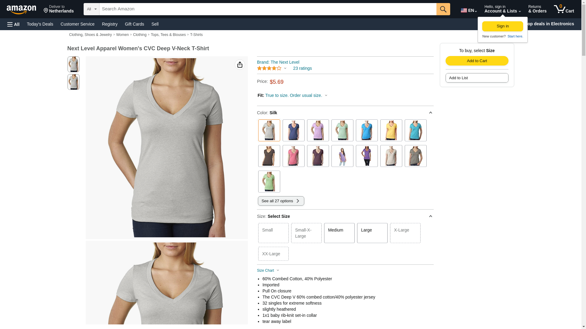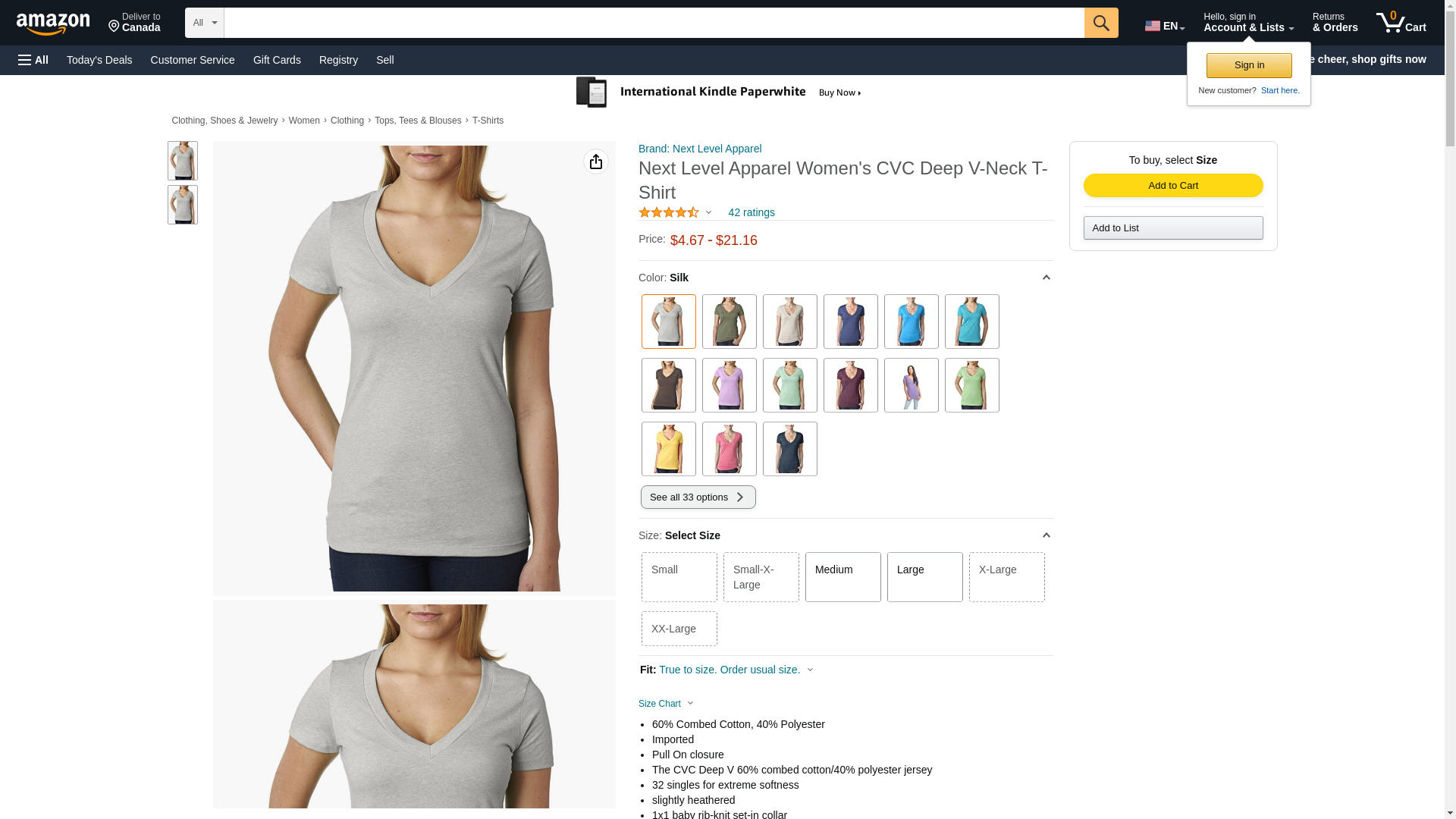 Next Level 6640 CVC Deep V Tee Silk Small