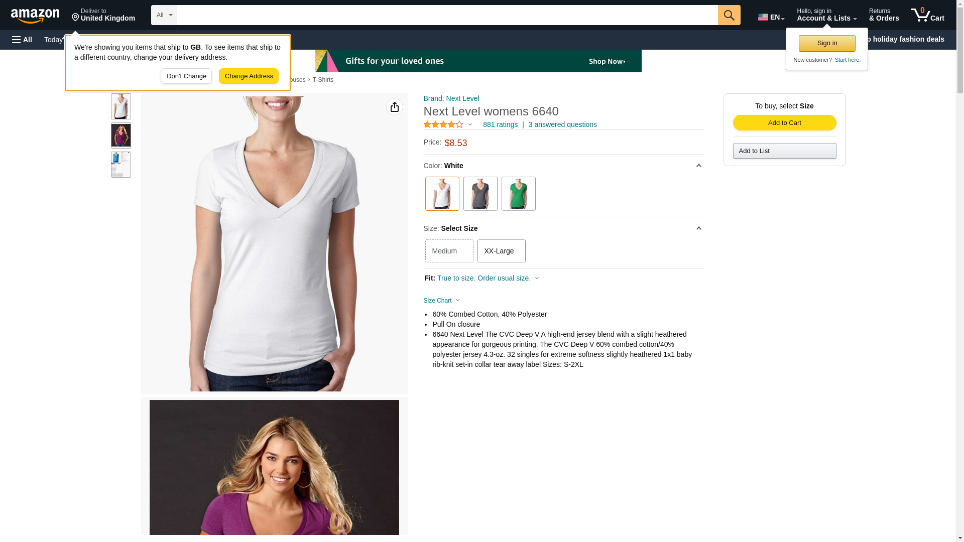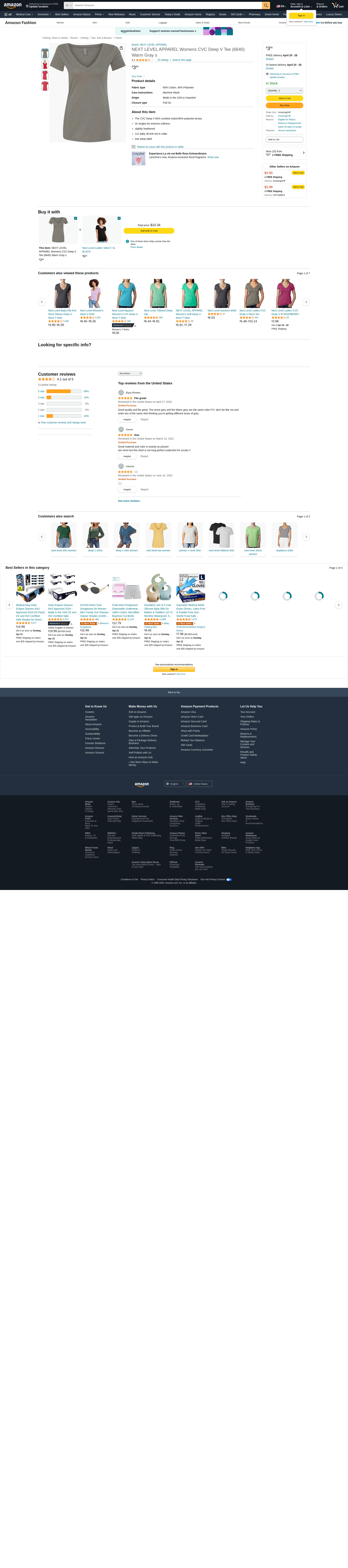 Next Level 6640 CVC Deep V Tee Silk Medium