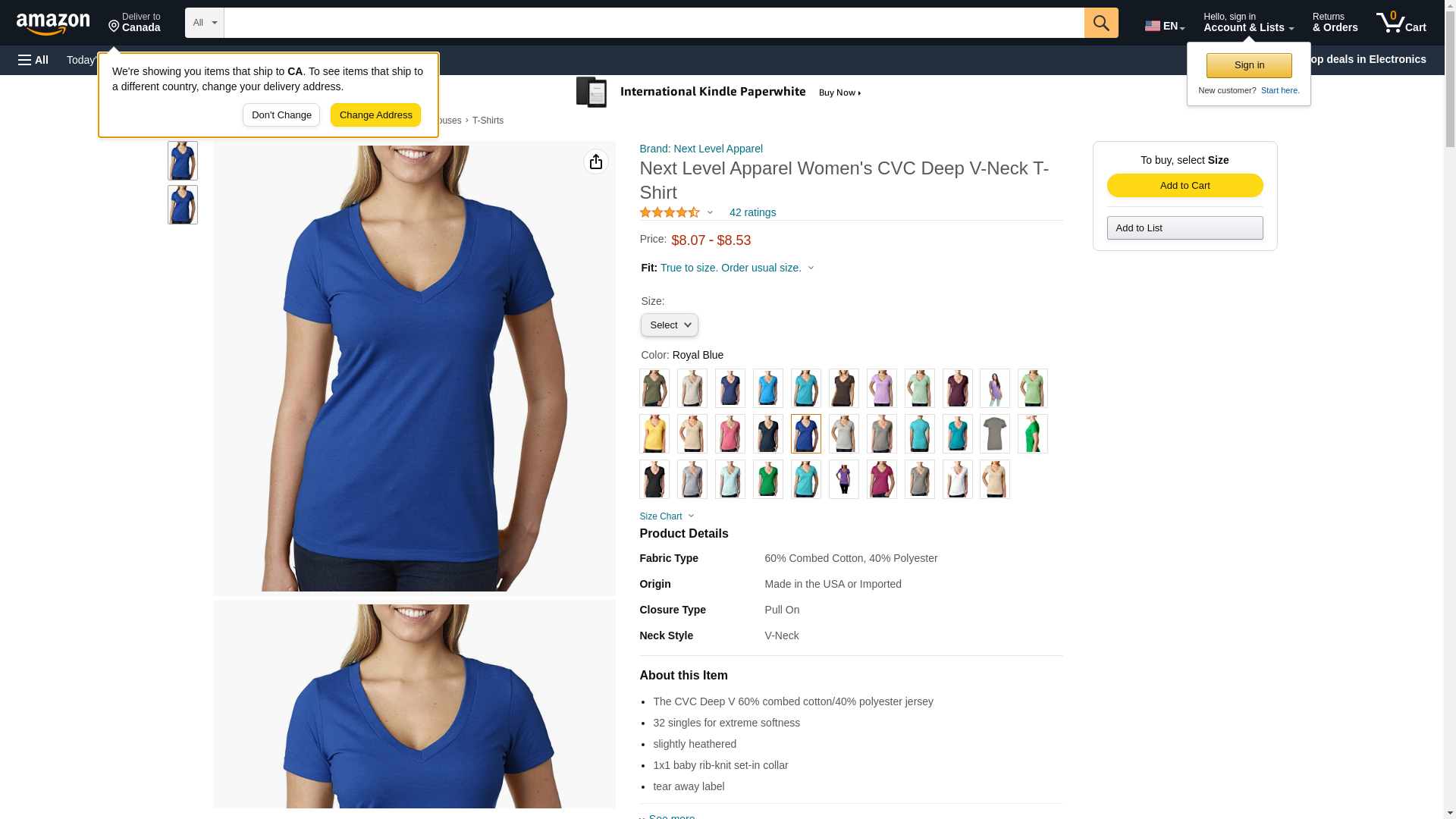 Next Level 6640 CVC Deep V Tee Royal Large