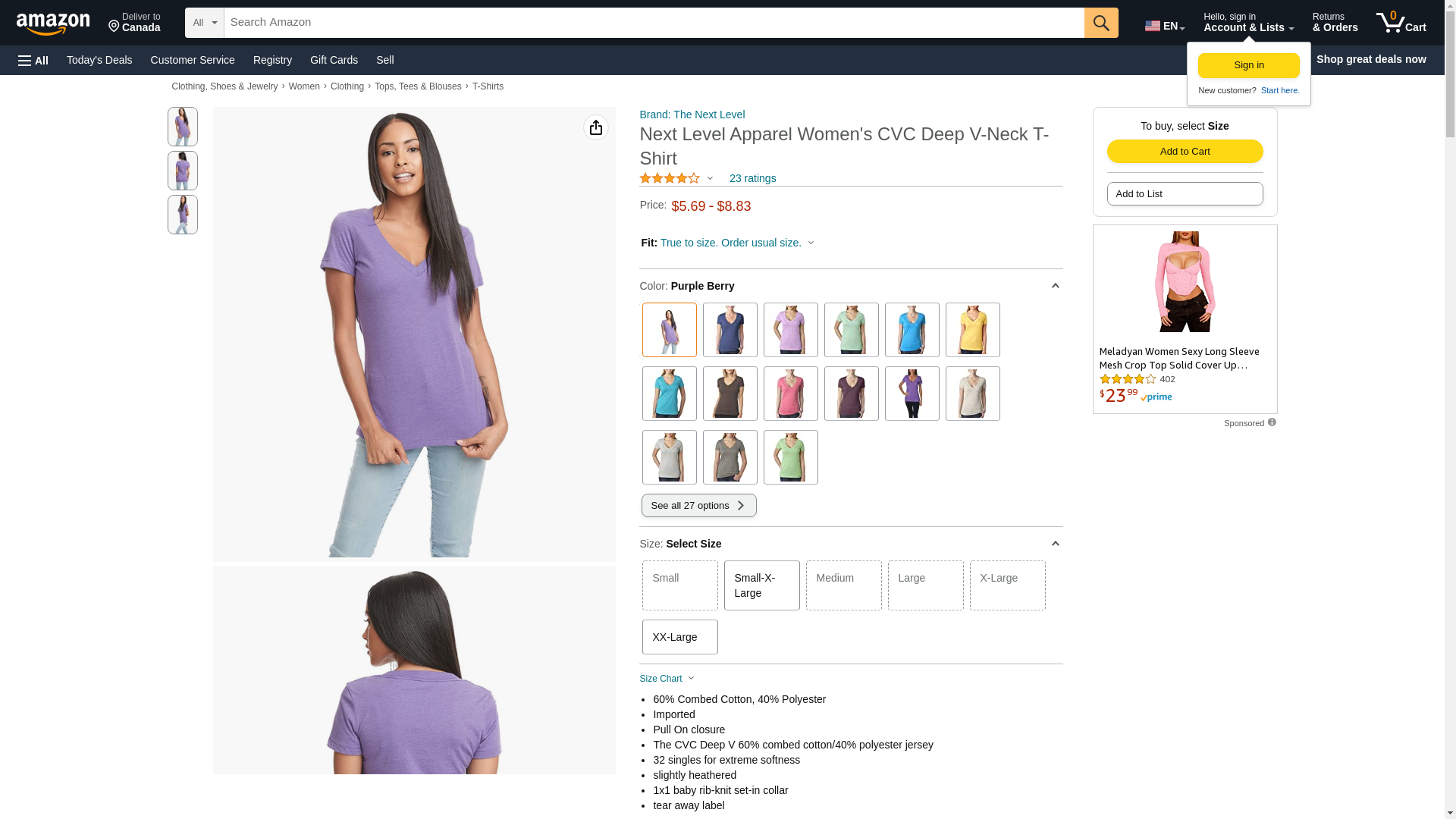 Next Level 6640 CVC Deep V Tee Purple Berry Small