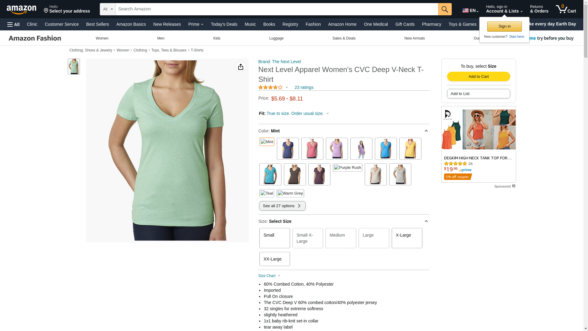 Next Level 6640 CVC Deep V Tee Mint Small