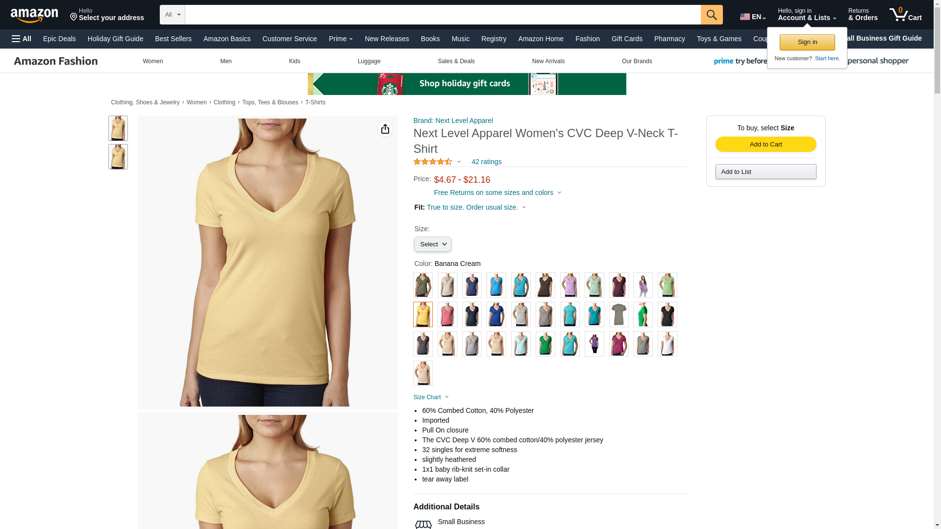 Next Level 6640 CVC Deep V Tee Banana Cream Medium