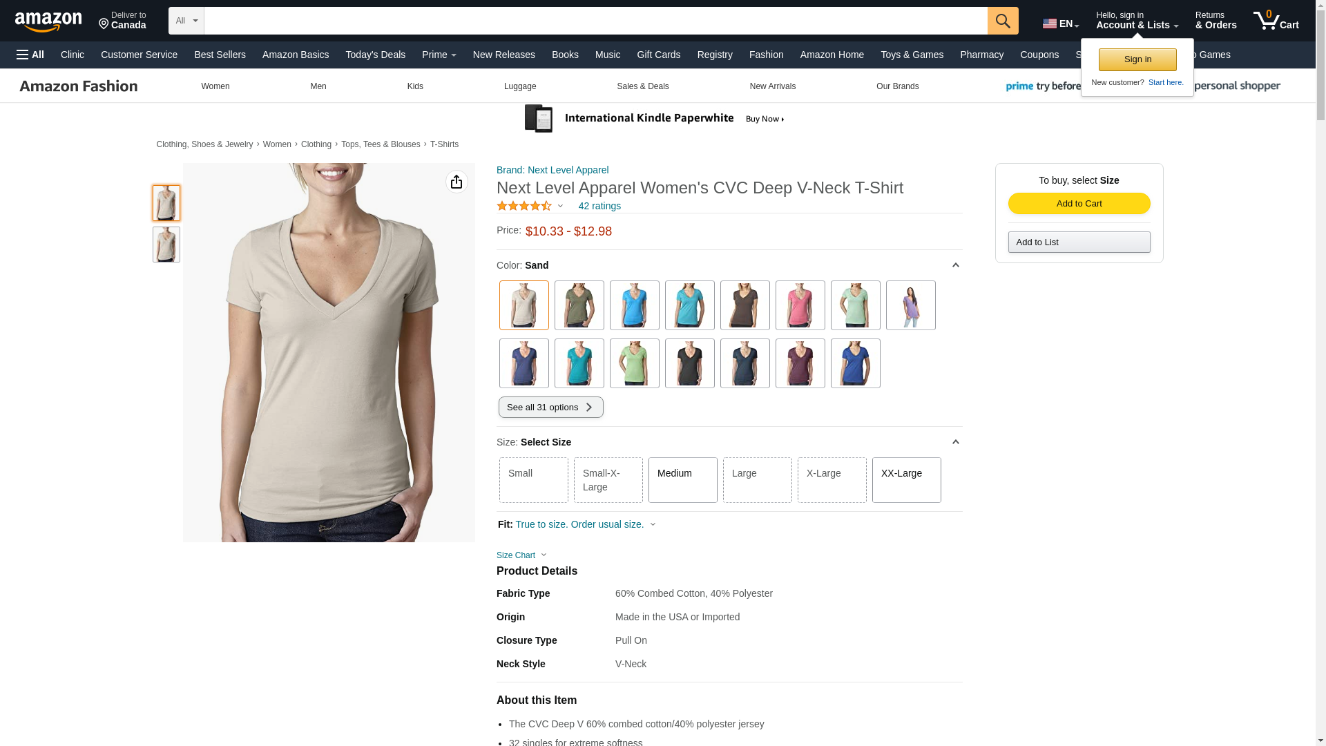 Next Level 6640 CVC Deep V Tee Sand Large