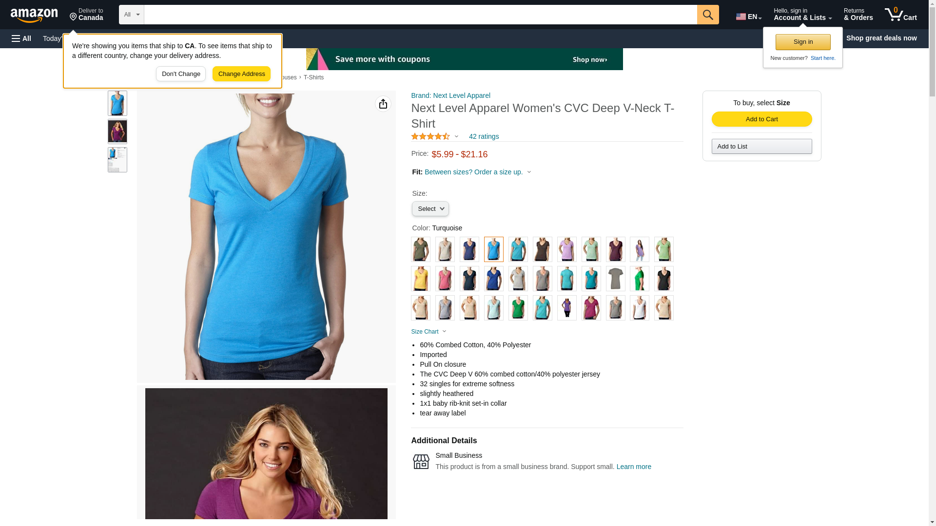 Next Level Womens CVC Deep V Tee 6640 -TURQUOISE S