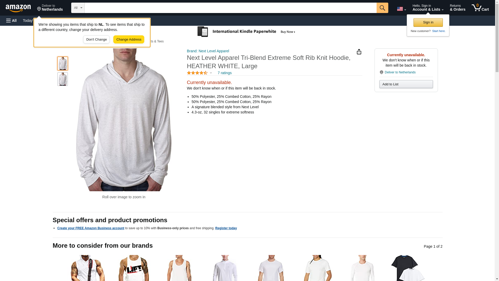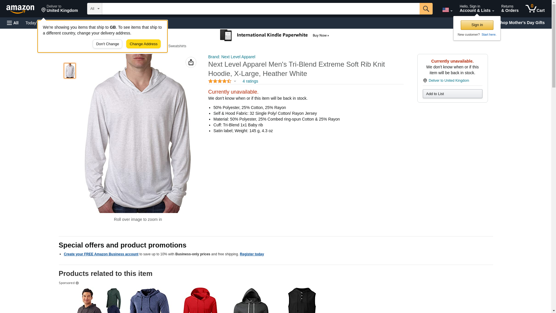 Next Level Apparel Tri-Blend Extreme Soft Rib Knit Hoodie, HEATHER WHITE, Large