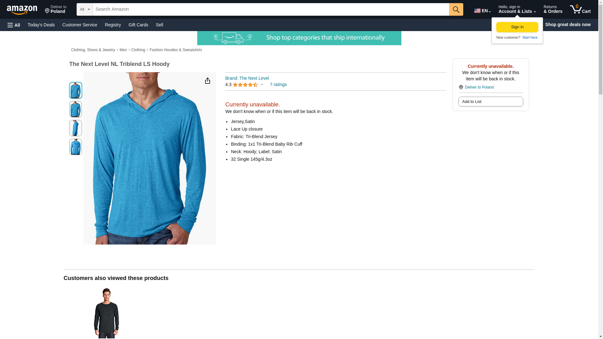 Next Level Apparel Men's Tri-Blend Long-Sleeve Hoodie