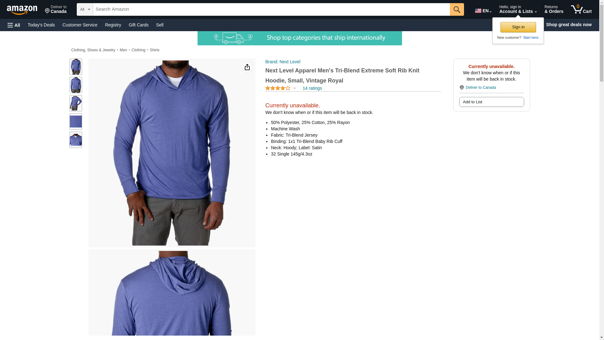 Next Level Apparel Tri-Blend Extreme Soft Rib Knit Hoodie, Vintage Royal, Small