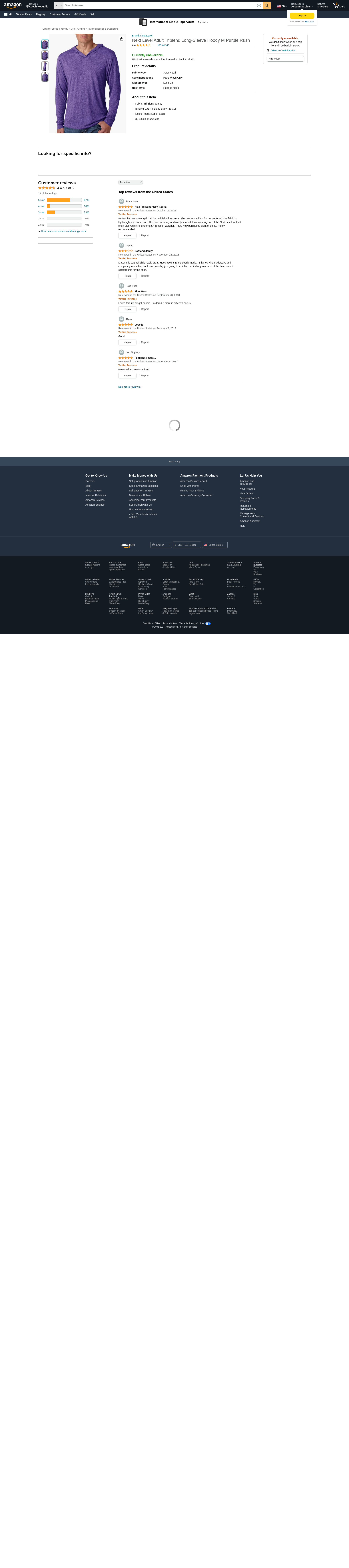Next Level Apparel Men's Tri-Blend Extreme Soft Rib Knit Hoodie, Large, Vintage Purple