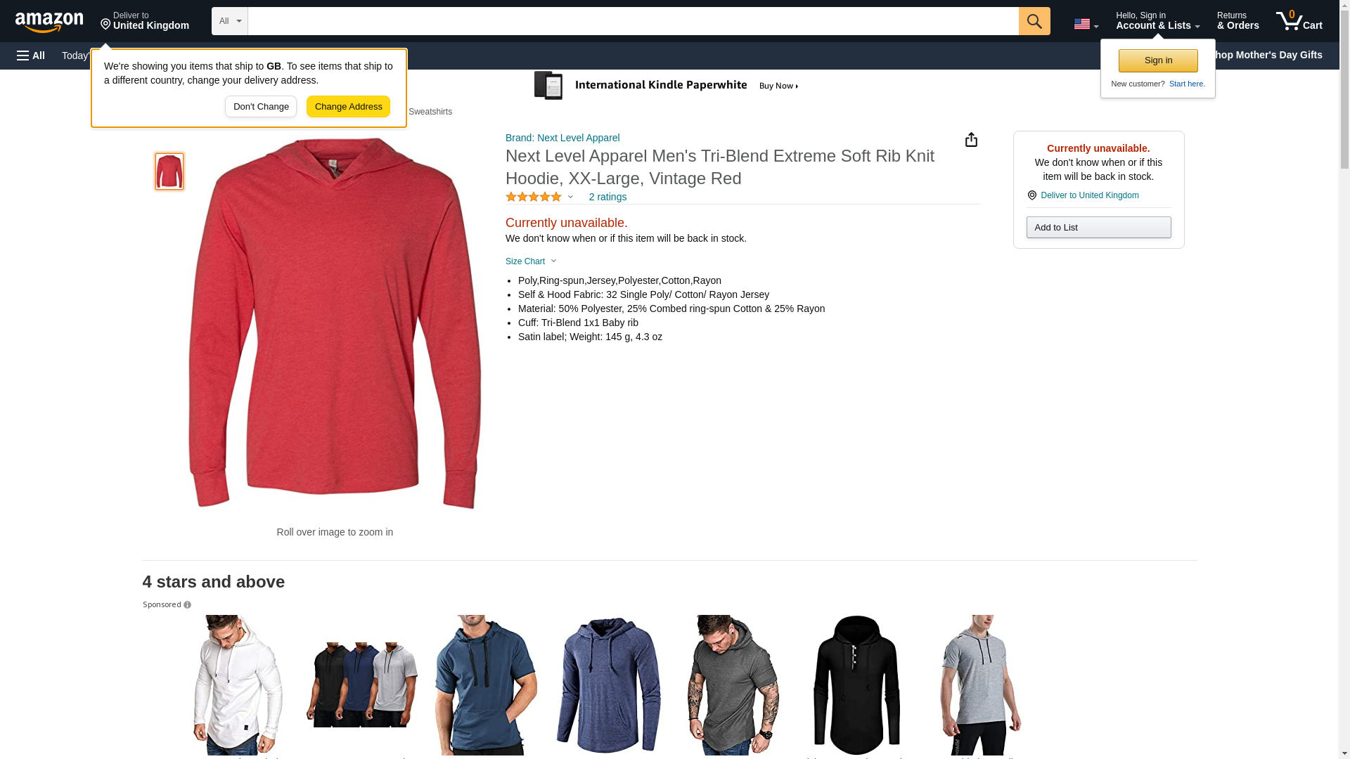 Next Level Apparel Men's Tri-Blend Extreme Soft Rib Knit Hoodie, XX-Large, Vintage Red